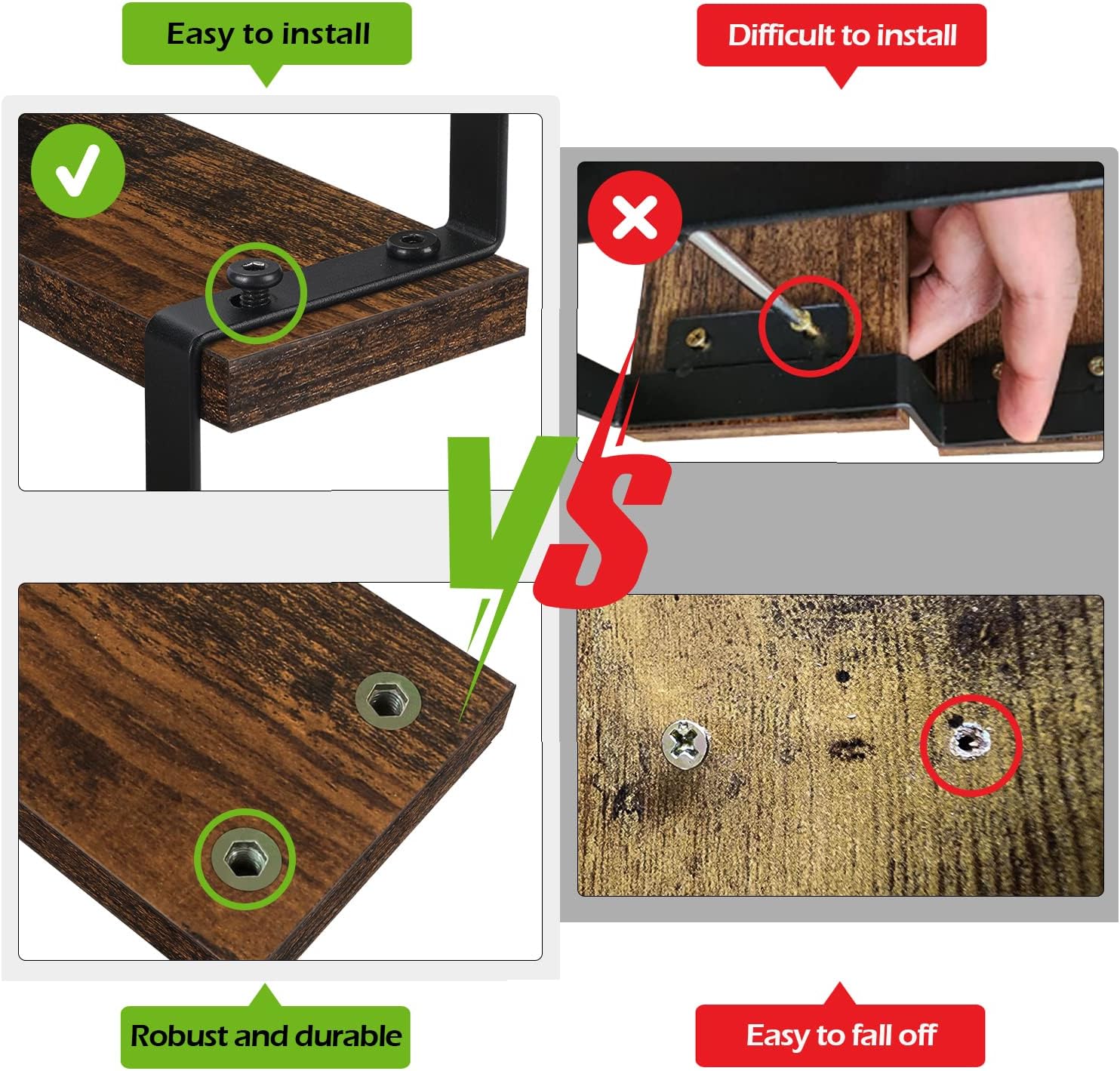 • Vintage Appearance: Rustic and aesthetic wood grain that fits perfectly with the black matt paint. Simple and elegant dark brown adds a vintage rustic feel to your home. This rack is suitable for many places in your home.
