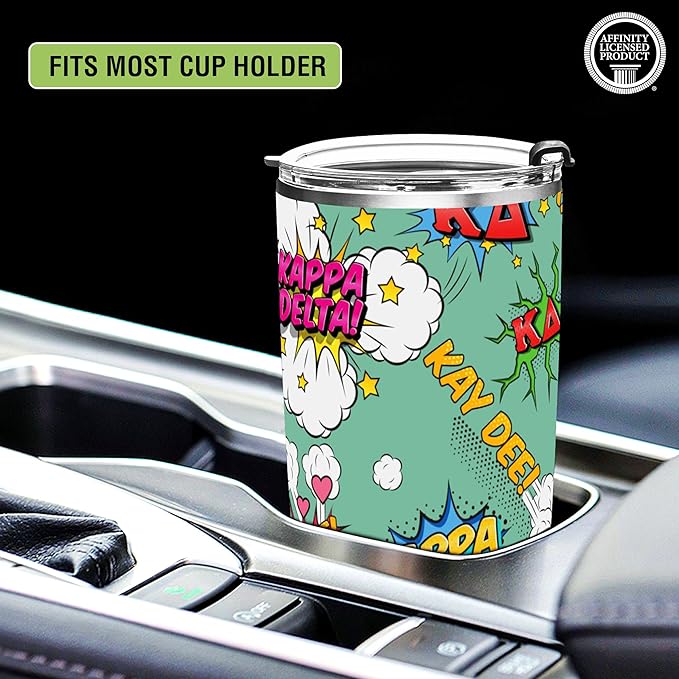 • KAPPA DELTA TUMBLER: This 20 oz stainless steel tumbler features the elegant "Comic Bang" design, reflecting the values of Kappa Delta Sorority. Its vibrant and stylish design adds charm and practicality to daily hydration routines.