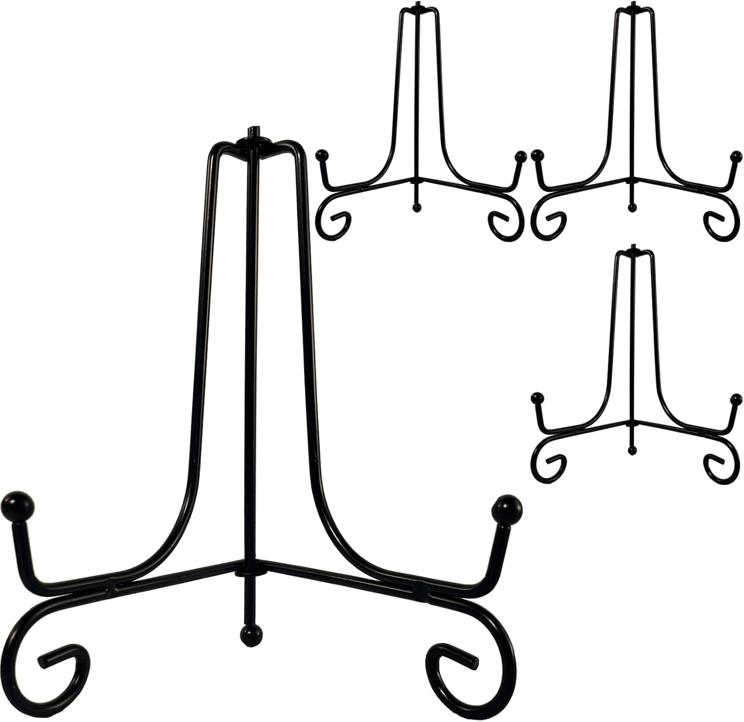 4PCS Premium Black Iron Plate Stands for Display 6 Inch, Decorative Solid Metal Plate Holders for Displaying, Mini Easel, Frame, Book, Card, Plaque, Bowl, Picture Stands for Display