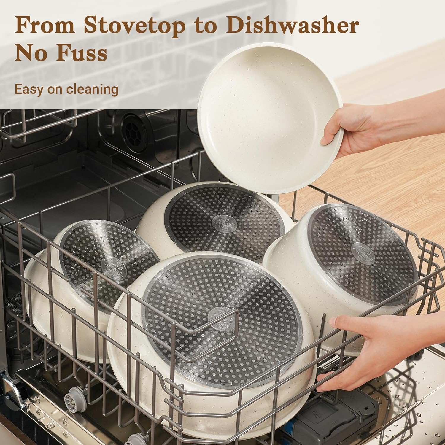 • Multi-Stovetop Compatibility – SODAY pots and pans set nonstick works with gas, electric, ceramic, and induction cooktops, plus oven-safe up to 480°F.