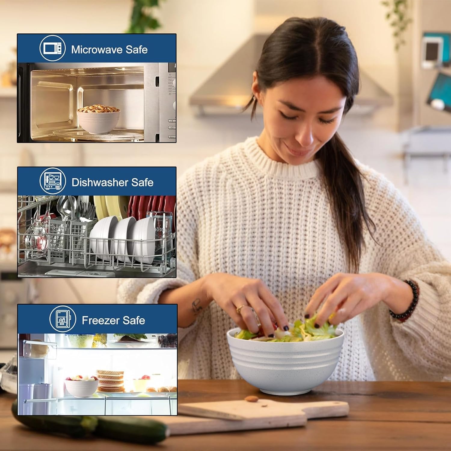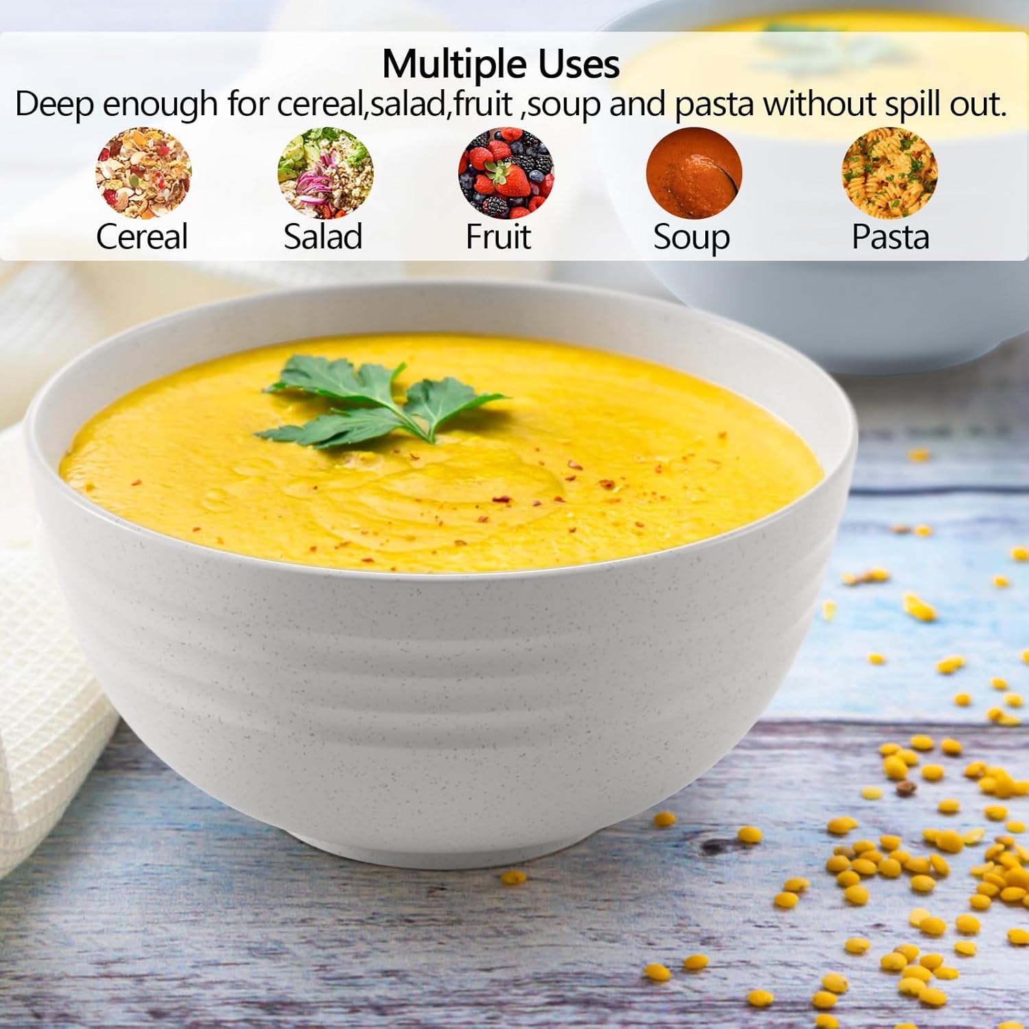 (Non Ceramic) 34 Ounce Cereal Bowls,Unbreakable Wheat Straw Fiber Bowl Set of 8, Microwave & Dishwasher Safe, Lightweight and Eco-Friendly Kitchen Bowls for Cereal, Salad, Soup, Snacks - BPA Free