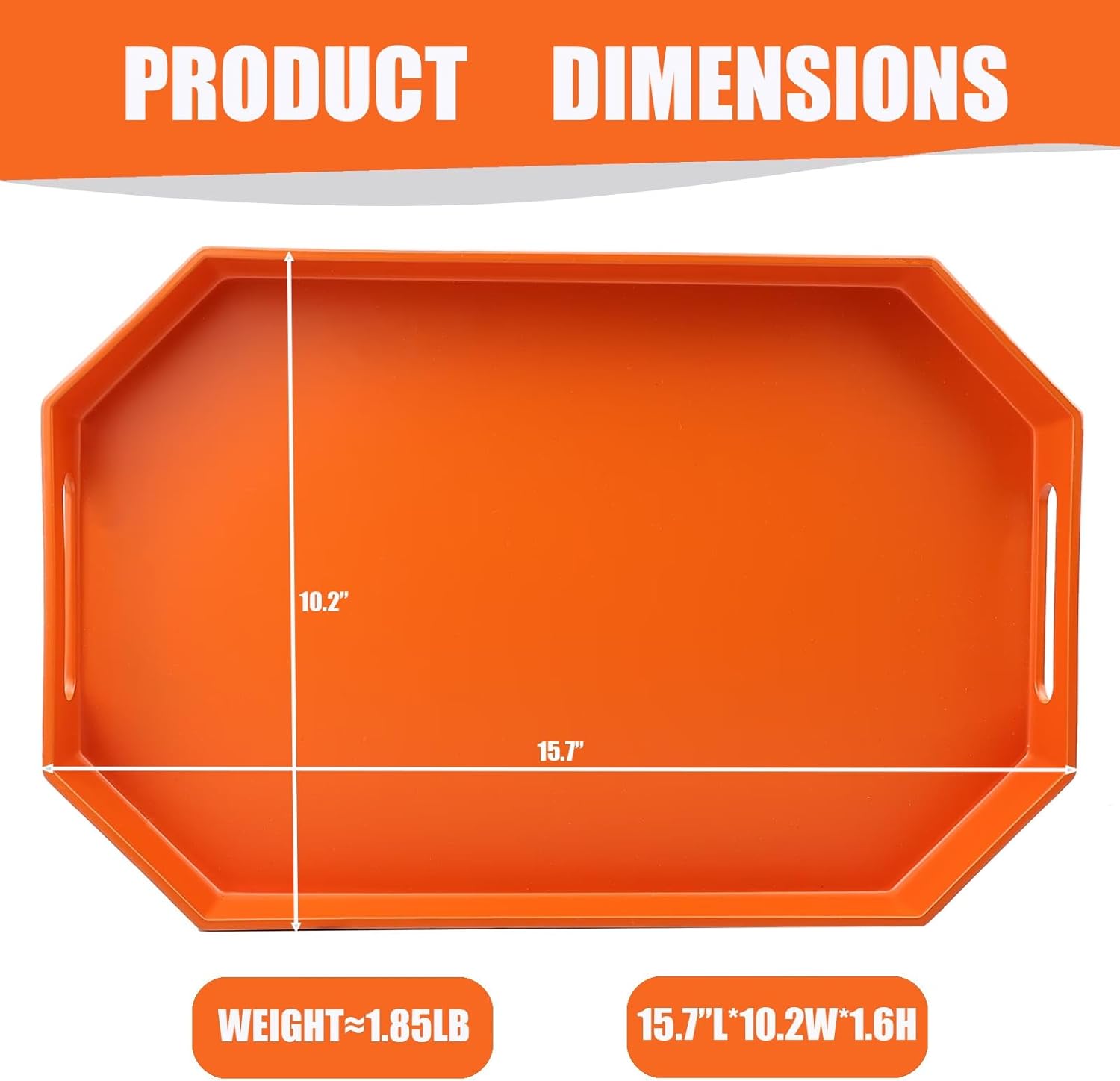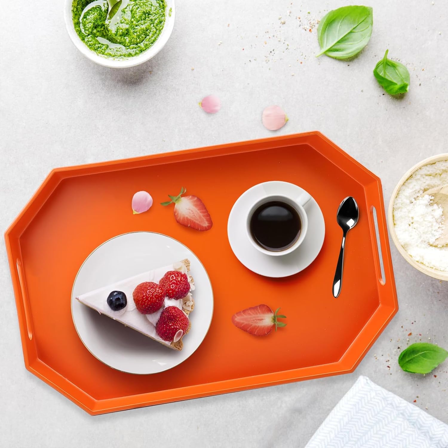 Orange Octagonal Serving Tray with Handles for Coffee Table, Plastic Decorative Tray for Ottoman, Kitchen Counter, Living Room, Outdoor Lacquer Tray for Entertaining