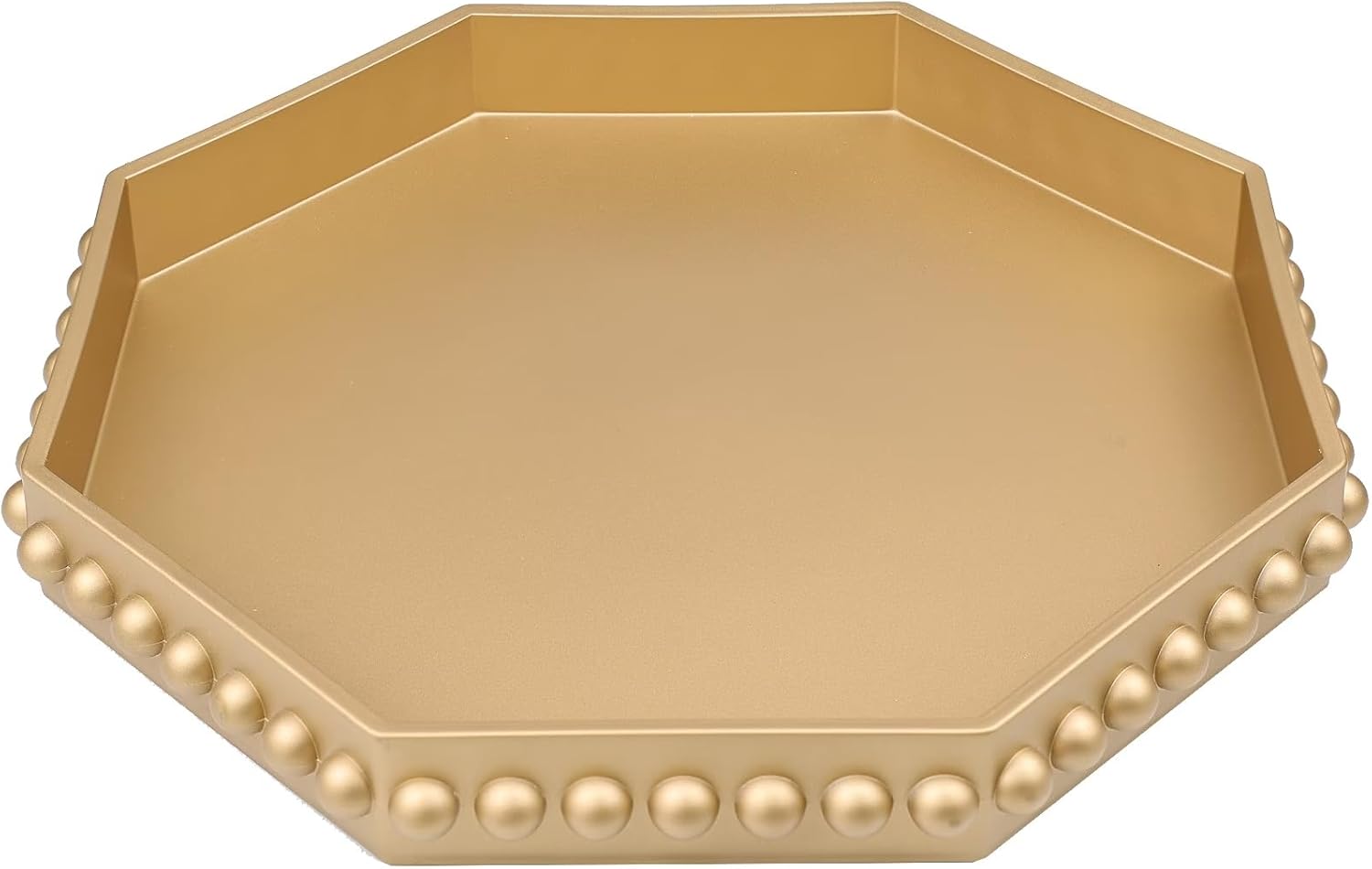 Gold Serving Tray for Coffee Table, Octagonal Beaded Plastic Decorative Tray for Ottoman, Kitchen Counter, Living Room, Outdoor Lacquer Tray for Entertaining