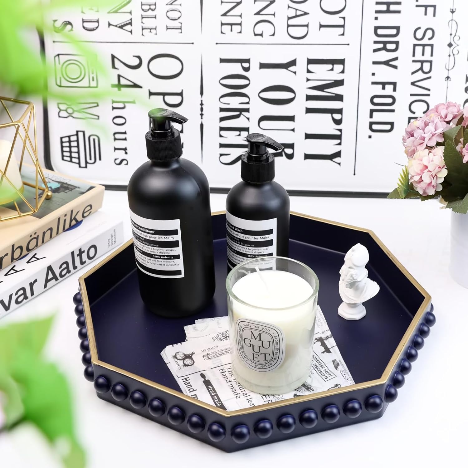 • 4.Multifunctional Use: Acts as a stylish display tray for candles, cups, dolls, flower pots, and more. Functions as a practical vanity tray for organizing jewelry, makeup, perfumes, and hair accessories. Ideal for use as a serving tray for breakfast, snacks, drinks, fruits, and more.