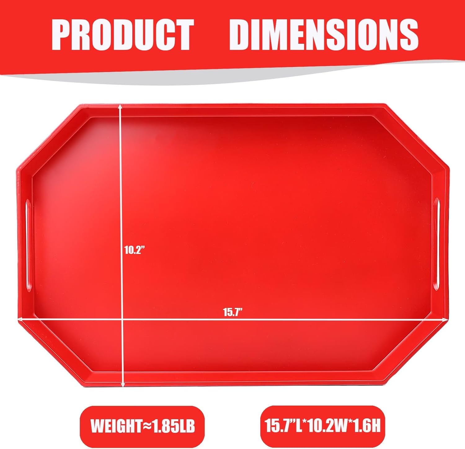 Red Octagonal Serving Tray with Handles for Coffee Table, Plastic Decorative Tray for Ottoman, Kitchen Counter, Living Room, Outdoor Lacquer Tray for Entertaining