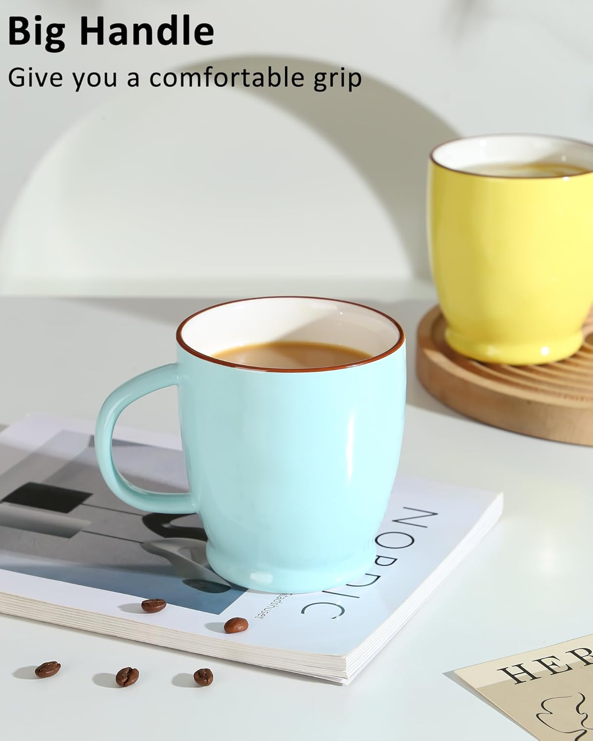 • PREMIUM WORKMANSHIP: Our ceramic coffee cups are made from pure natural alpine soil raw materials and are repeatedly burned at high temperatures. The color glaze is selected to be safe and non-toxic. After total 12 artificial selection and inspection processes, tall ceramic coffee mug will not fade and does not contain lead, making it safe for you and your family to use