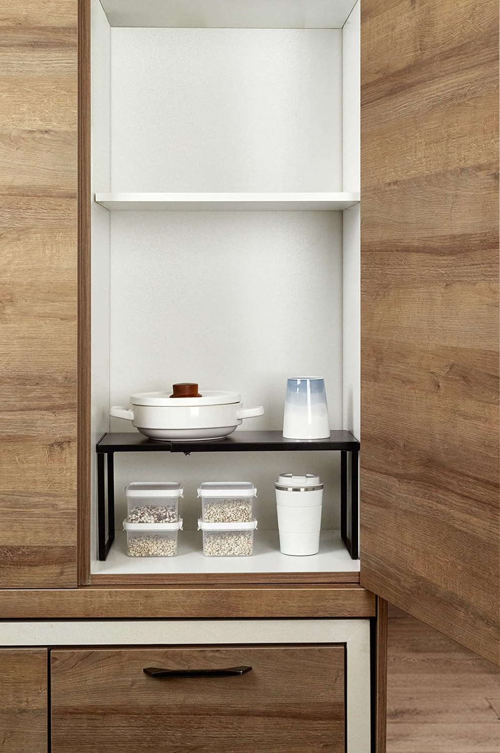 • FUNCTIONAL STORAGE: This cabinet shelf can be used in various scenes of your home including cabinets, pantry, cupboards, kitchens, studio, bathrooms, bedrooms, under sink and any counter surfaces. You may use the shelf as a storage organizer for plates, cups, dishes, pots, bowls, snacks, books, magazines and whatsoever.