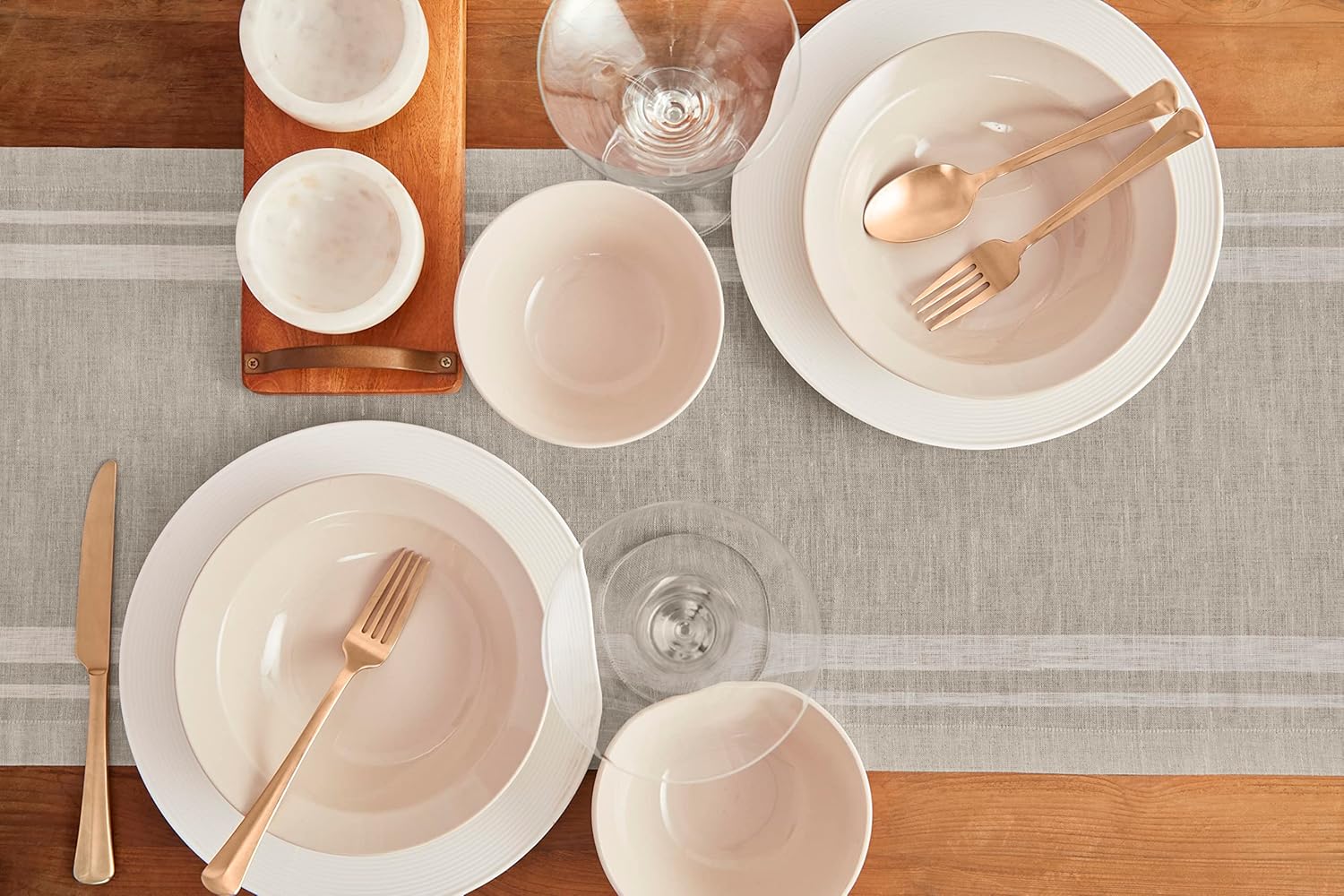Solino Home Striped Linen Table Runner 120 Inches Long - French Stripe 100% Pure Linen White and Natural Dining Table Runner 16 x 120 Inch for Fall, Autumn, Thanksgiving