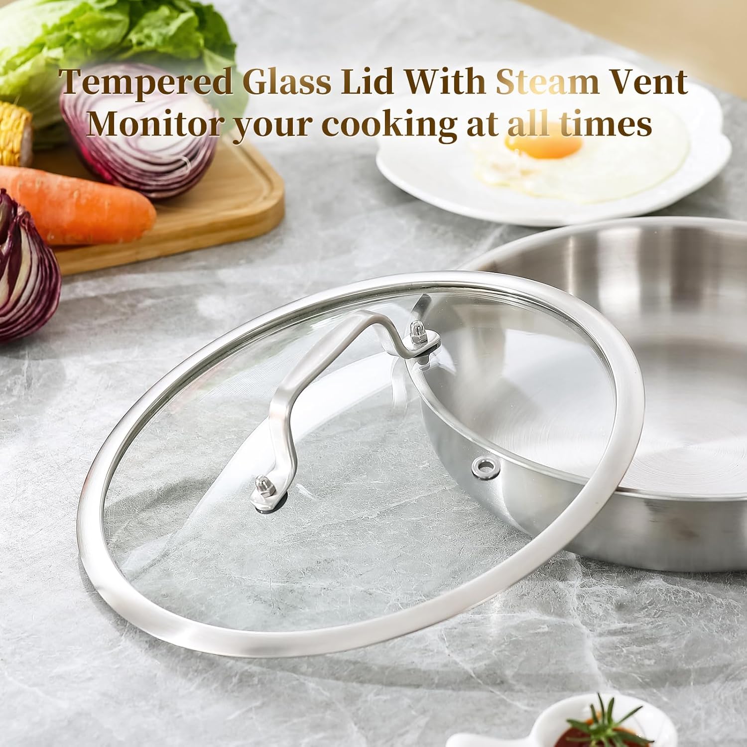 DELARLO Tri-ply Stainless Steel Kitchen Cookware Frying Pan Set with Lid 10.5" 12.5" Induction large Skillets Chef's Pan,Pots and Pans Set Kitchen Cookware Set Suitable for All Stove