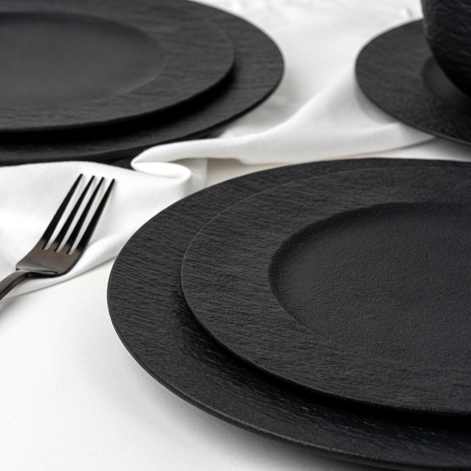 MIAMIO - 16-pc Dinnerware Set Black/Modern Ceramic Tableware/Dinnerware/Set for 4 Persons - Oasis Collection