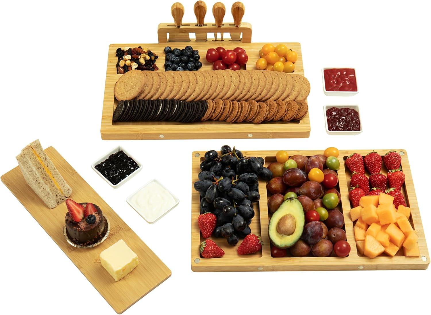 • EASY TO CLEAN AND DISHWASHER SAFE: The set of stainless steel cheese knives set and the ceramic bowls are dishwasher safe. The main bamboo bodies are easily hand-washed.