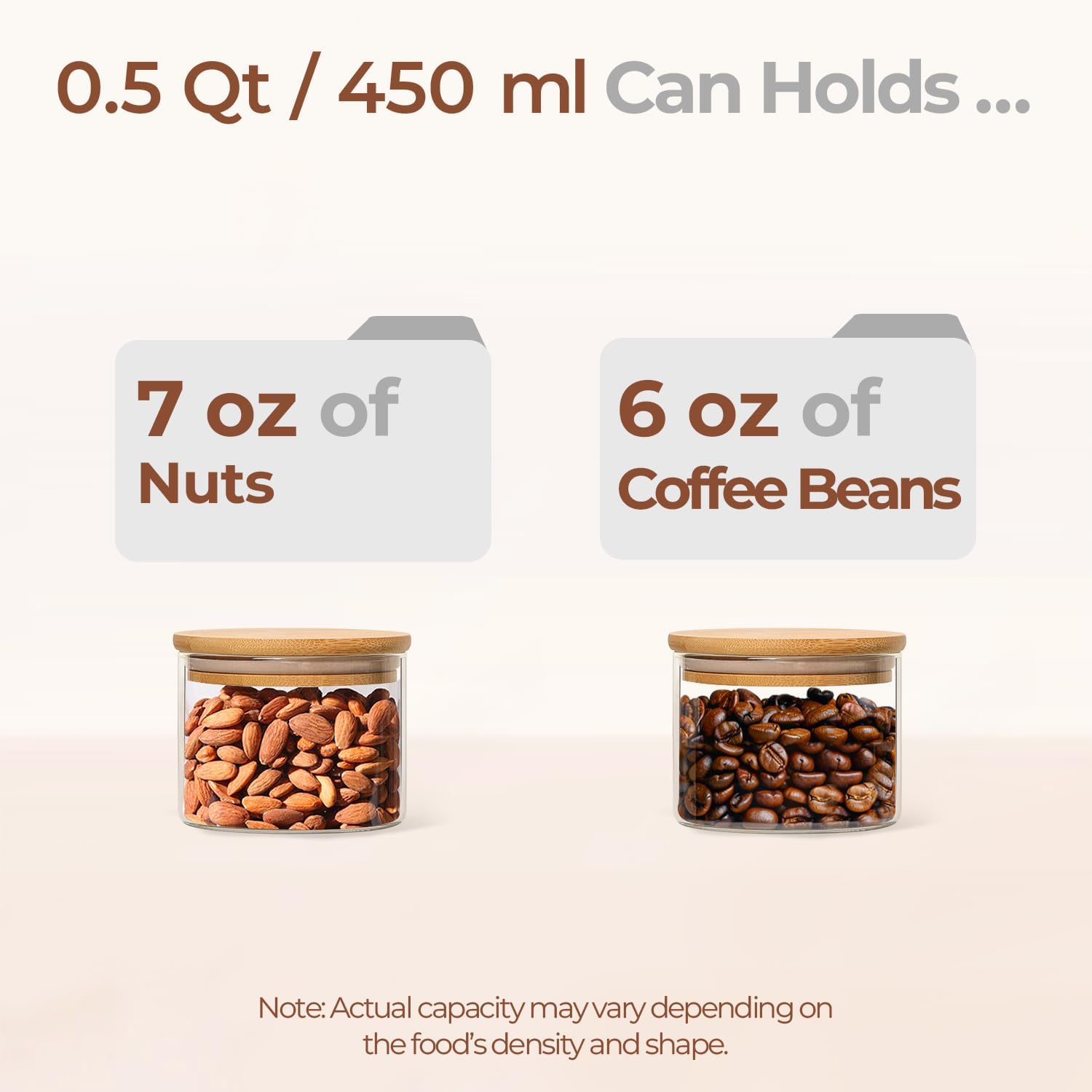 • Size For Subpackage: The 0.5 Qt jars are good to store family size food for maximum freshness and convenience in cabinet and pantry; Note: The glass jars is safe in dishwasher while the wood lid is hand washing only! The lid only clean with a damp cloth