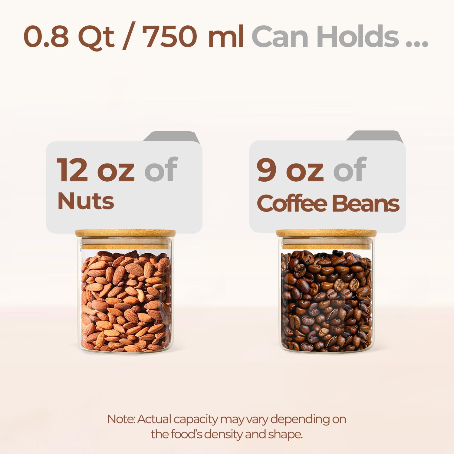 • Versatile Glass Canisters: our 0.8Qt glass pantry storage containers ideal for storing cereals, cookie, snacks, nuts, oat, or even can use glass jars as meal prep jars, salad jars, candy jar, bath salt jars, spice jars, sugar coffee containers