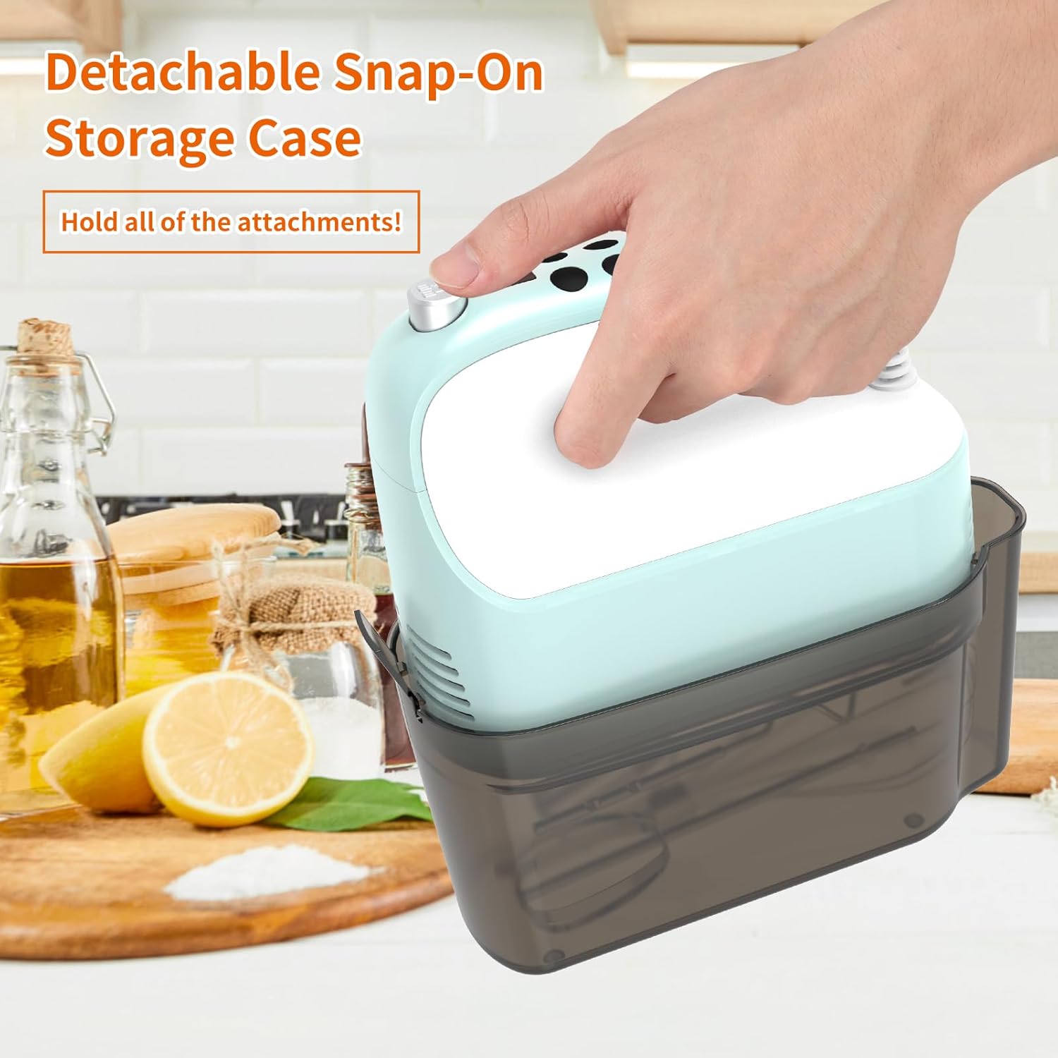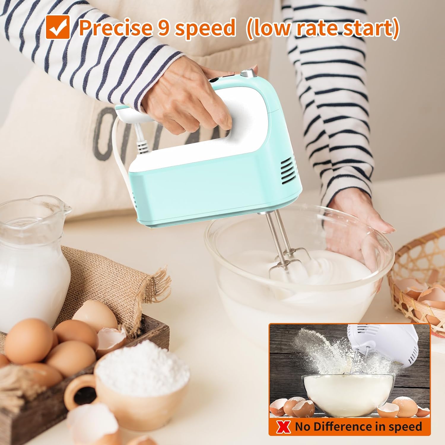 9-Speed Digital Hand Mixer Electric, 400W Powerful DC Motor, Baking Mixer Handheld with Snap-On Storage Case, 5 Stainless Steel Accessories, Flat Beaters, Dough Hooks, Whisk (Ice Blue & White)