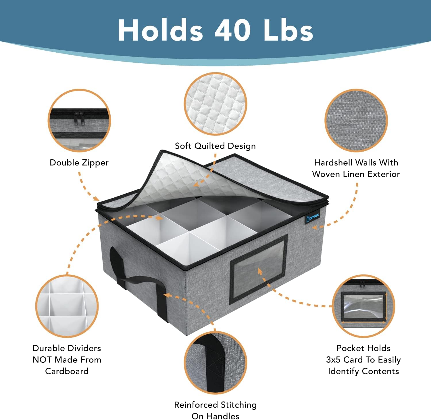 • STURDY PROTECTION FOR YOUR PRECIOUS MASON JARS: Rest easy knowing your 32 oz mason jars are safeguarded against accidental drops during transit and storage; our JarMax organizer boasts a durable hard-shell design with strong polypropylene side walls and quality quilted linen fabric for unmatched protection; your jars remain pristine and secure, making this the ideal solution for pantry organizers and storage.