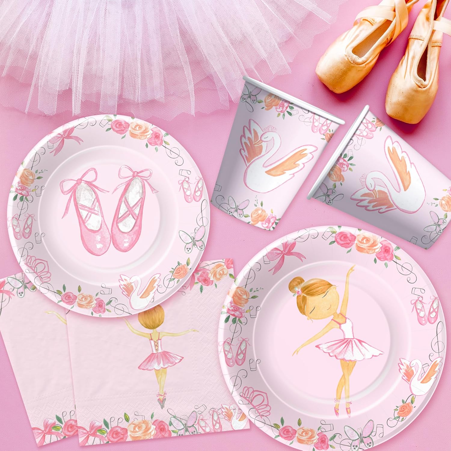• 【Applicable Occasions】Our ballerina birthday party supplies tableware set is perfect for any age, whether you're celebrating ballet theme birthday party, a little ballerina theme birthday, a ballerina baby shower, a dance recital celebration, dancing queen party decorations, or just a fun gathering. Ballerina party decorations will help you set the stage for a magical celebration