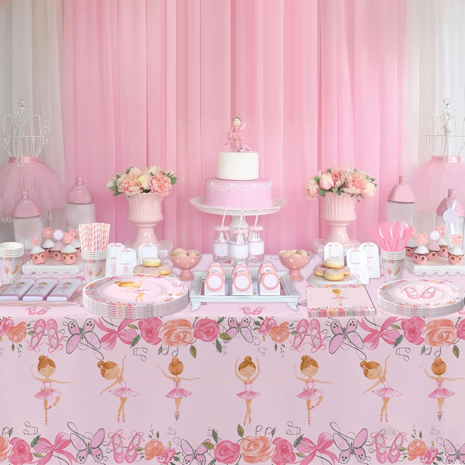 • 【Ballerina Party Supplies】Our ballerina birthday party decorations dinnerware set included 24pcs 9'' ballet dinner plates, 24pcs 7'' ballet dessert paper plates, 24pcs napkins, 24pcs forks, 1pcs ballerina tablecloth, for ballet birthday party supplies