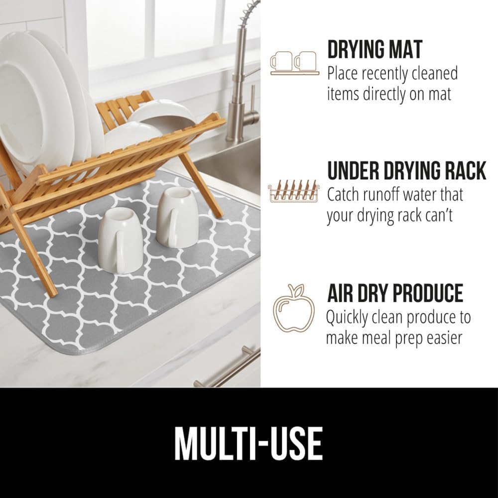 GORILLA GRIP Ultra Water Absorbent Microfiber Dish Drying Mat, 18x32, Quick Dry Thick Mesh, Slip Resistant Pad for Sink Dishes or Under Rack, Kitchen Counter Accessories, Machine Wash Mats, Quatrefoil