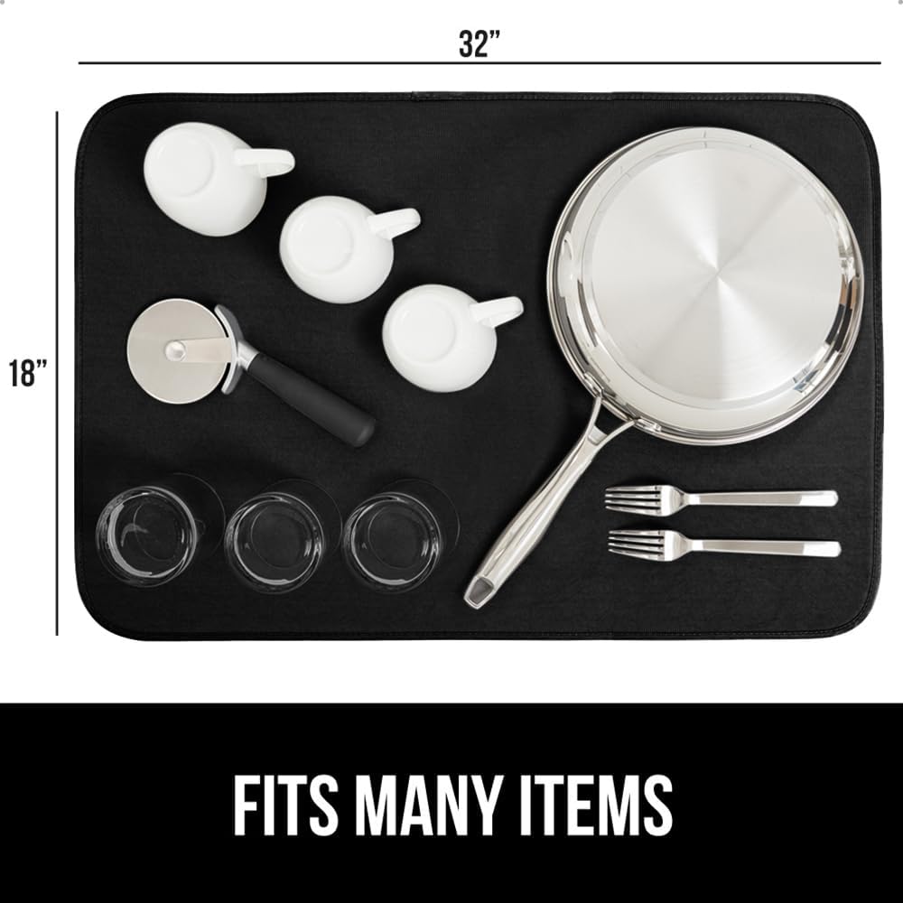 GORILLA GRIP Ultra Water Absorbent Microfiber Dish Drying Mat, 18x32, Quick Dry Thick Mesh, Slip Resistant Pad for Sink Dishes or Under Rack, Kitchen Counter Accessories, Machine Wash Mats, Black