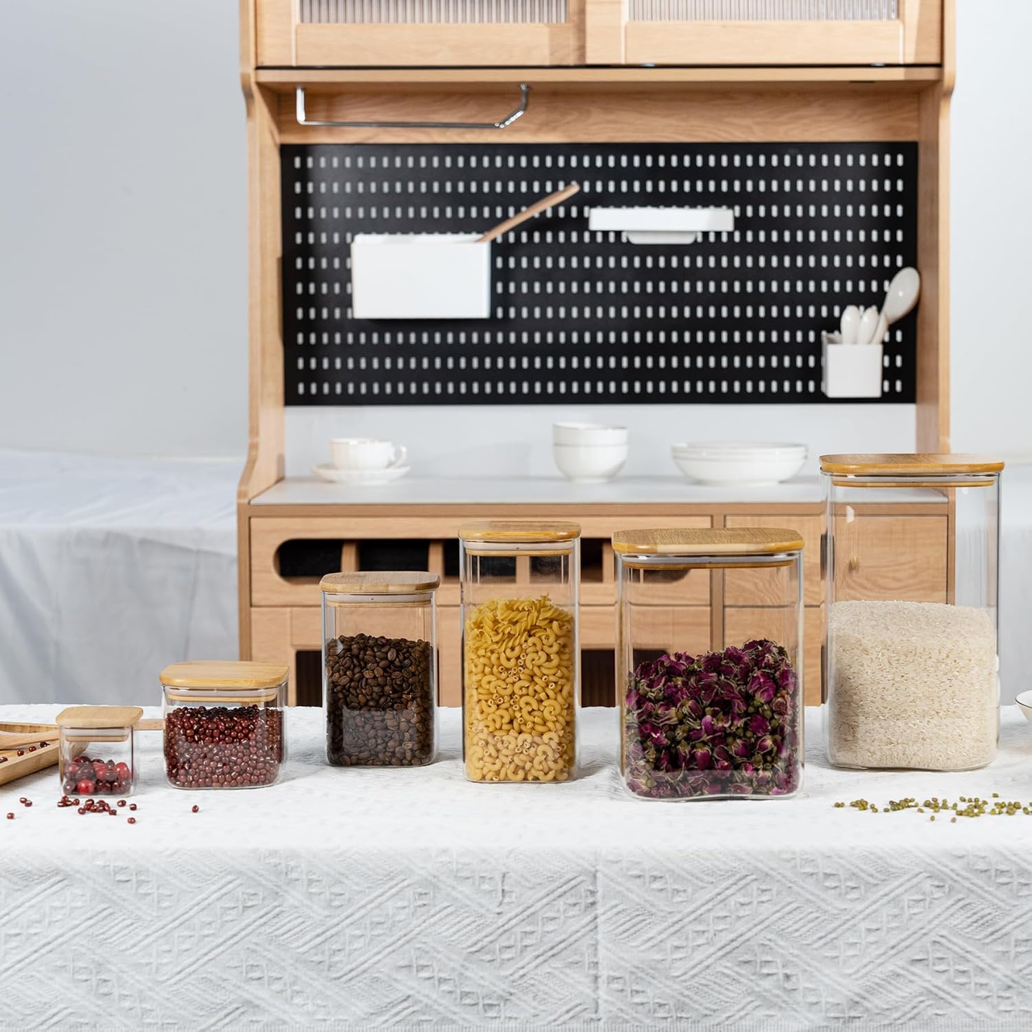 • [Transparent jar]- Transparent square glass containers make your items visible, allowing you to clearly see the contents of the glass storage jar and the remaining stock, and then you can easily replenish the food that is about to run out.