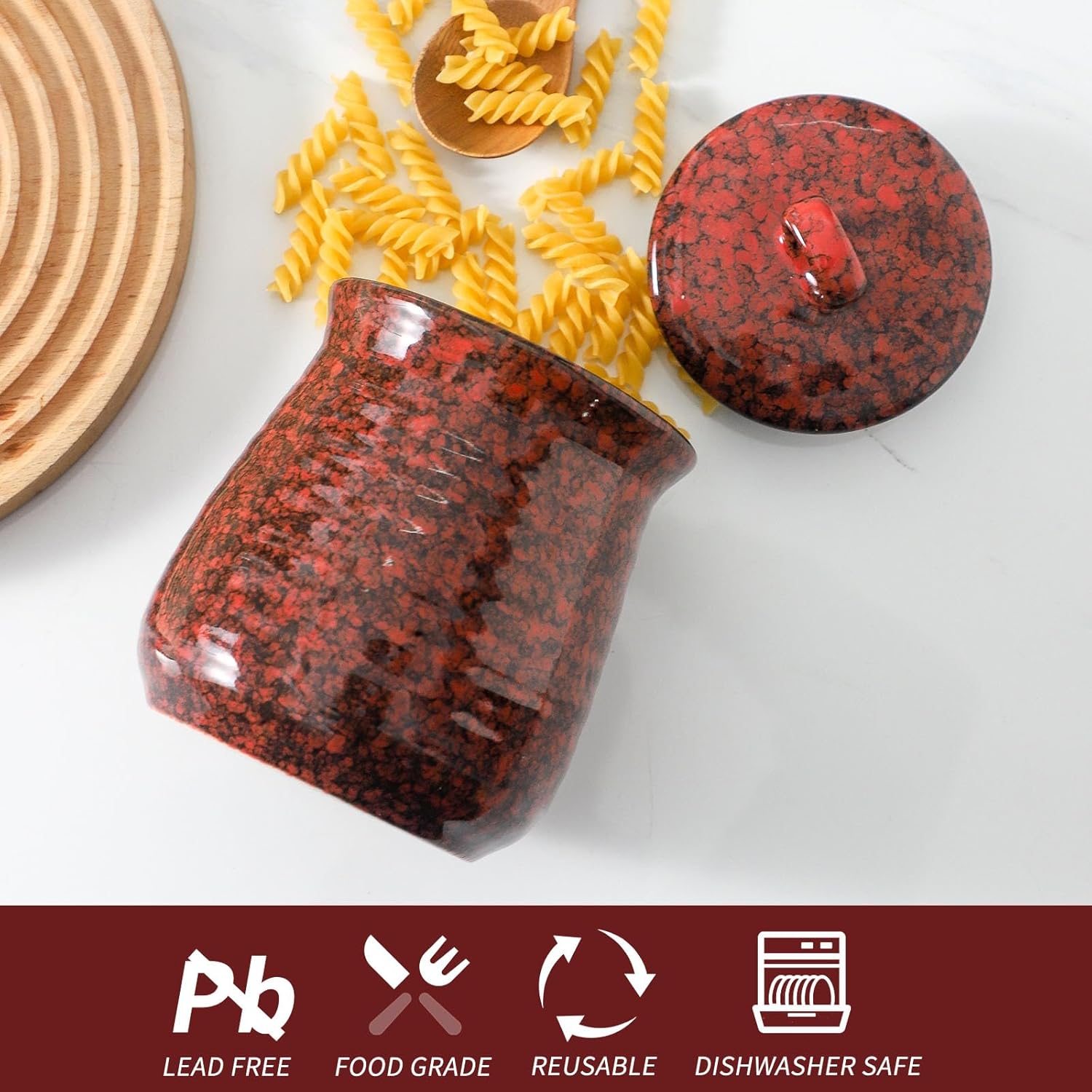 Ceramic Food Storage Jar, Coffee Canister for Countertop with Lids Airtight, Large Flour,Spices,Beans,Rice and Candies Containers for Kitchen and Home,Gift for Halloween,Farmhouse,35 OZ Red