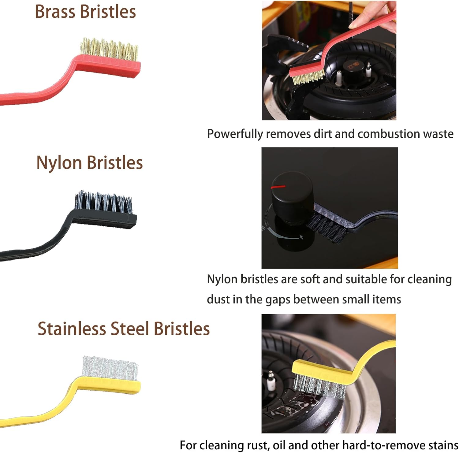 • Premium quality materials: The crevice brush features high-quality bristles, While the three small wire brushes are crafted with bristles of brass, stainless steel, and nylon. The dirt scraper is designed to tackle a wide range of stubborn dirt
