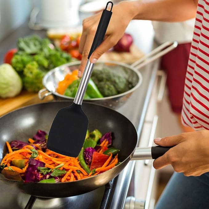 • Premium&Safe Material:Cooking Spatulas and Spoons crafted from high-quality, food-grade silicone, Non-Slip Handle BPA Free,these utensils ensure a safe and healthy cooking experience. The material is known for its non-toxic nature, making it free from harmful chemicals that could leach into your food. The silicone construction also guarantees durability and resistance to wear, providing a long-lasting kitchen companion