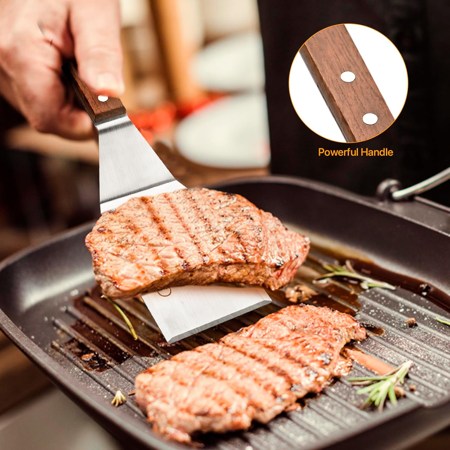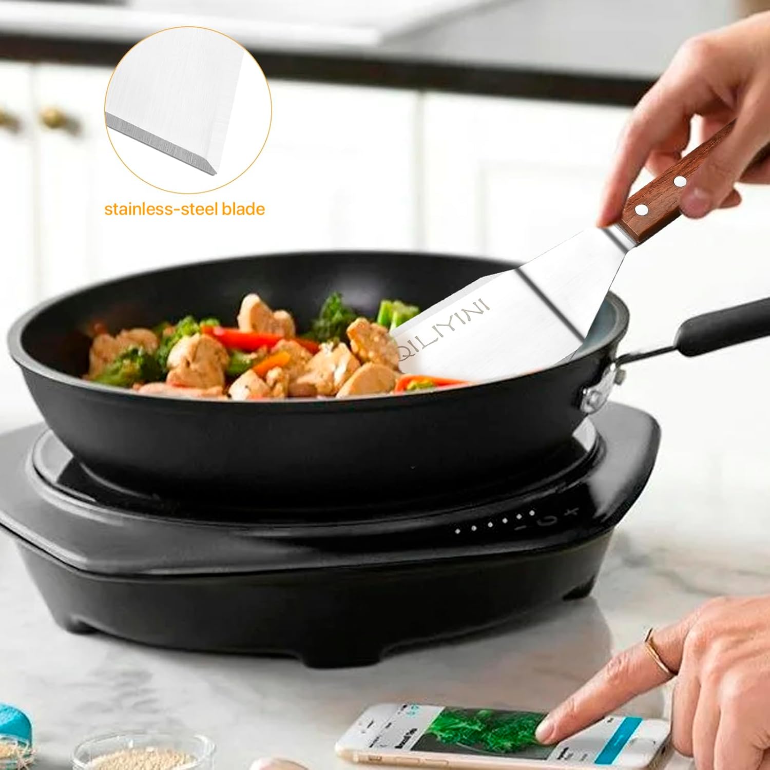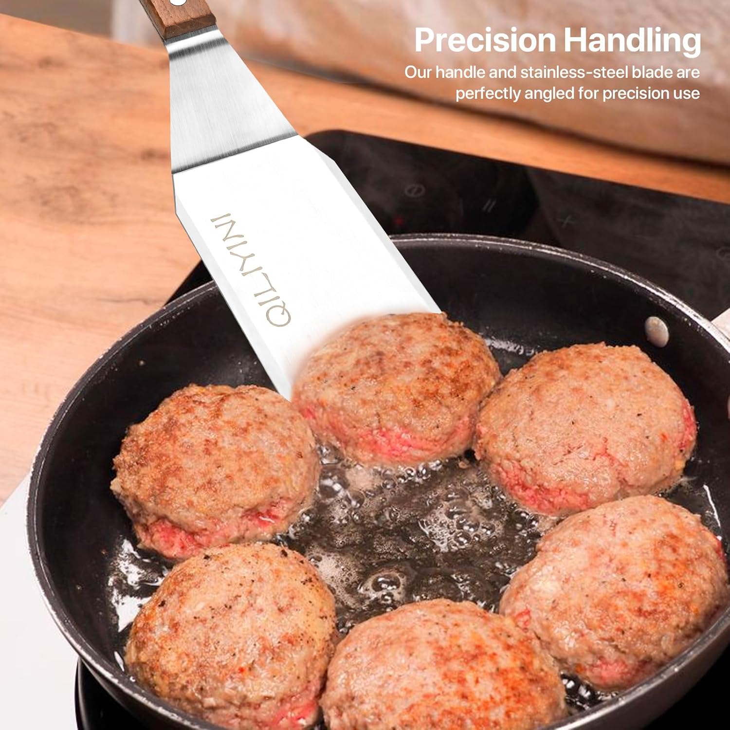 • QILIYINI’S SIGNATURE SPATULA – Protect your cookware with the professional grade stainless steel spatula. Perfect for cast iron griddles, BBQs, and flat top grills