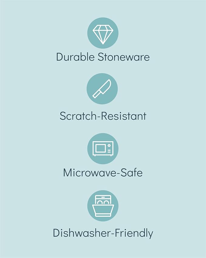 • ✅ PURE JOY & CULINARY DELIGHT: Expertly crafted from durable stoneware, this high-fired, matte-glazed, and scratch-resistant dinnerware set is designed for those who appreciate high-quality craftsmanship and a refined dining experience.