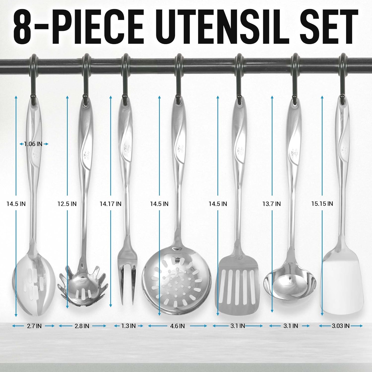 Zulay Kitchen Stainless Steel Cooking Utensil - Stainless Steel Kitchen Utensil - Durable Kitchen Gadgets - Metal Kitchen Accessories - Easy to Clean Kitchen Tools - 8 Piece Set