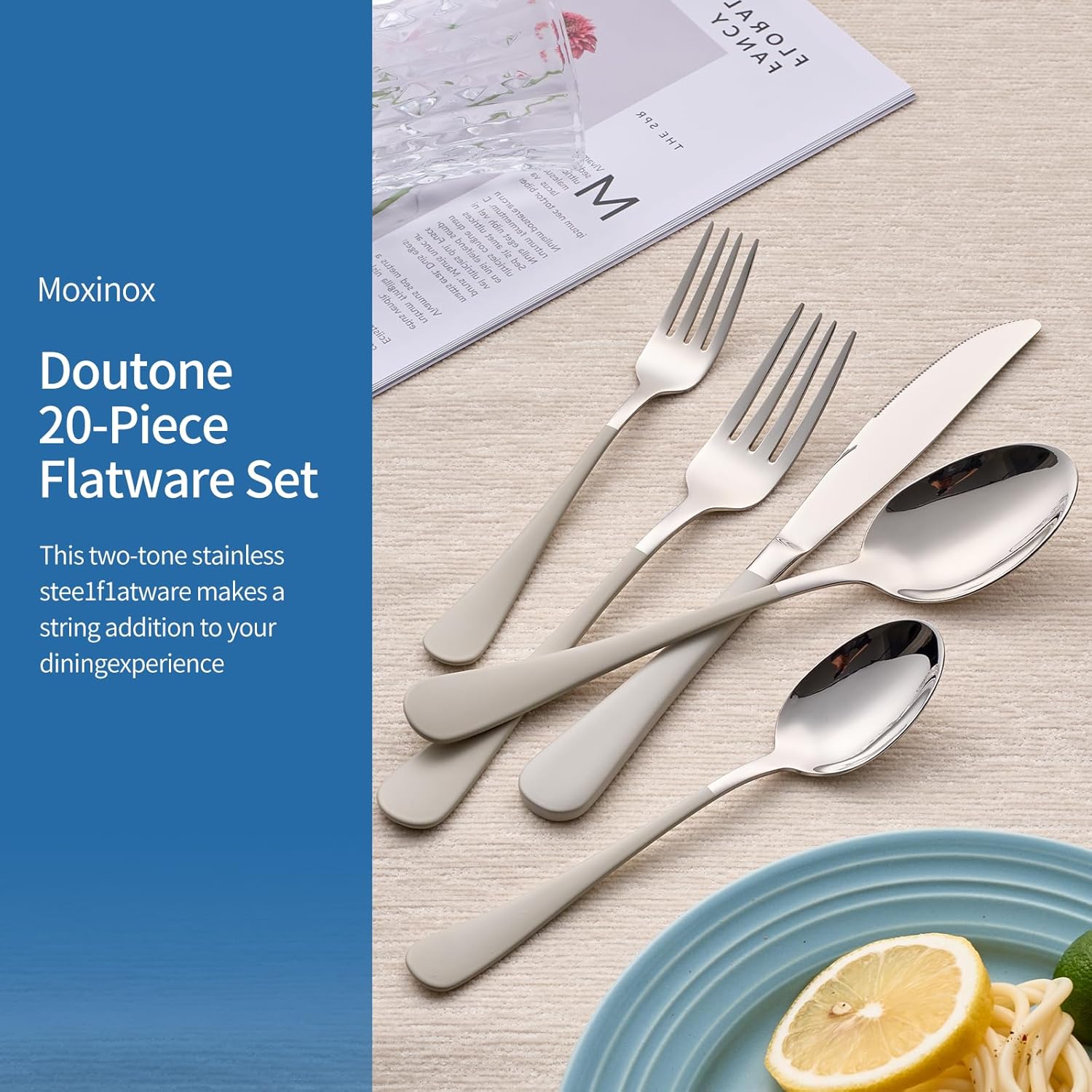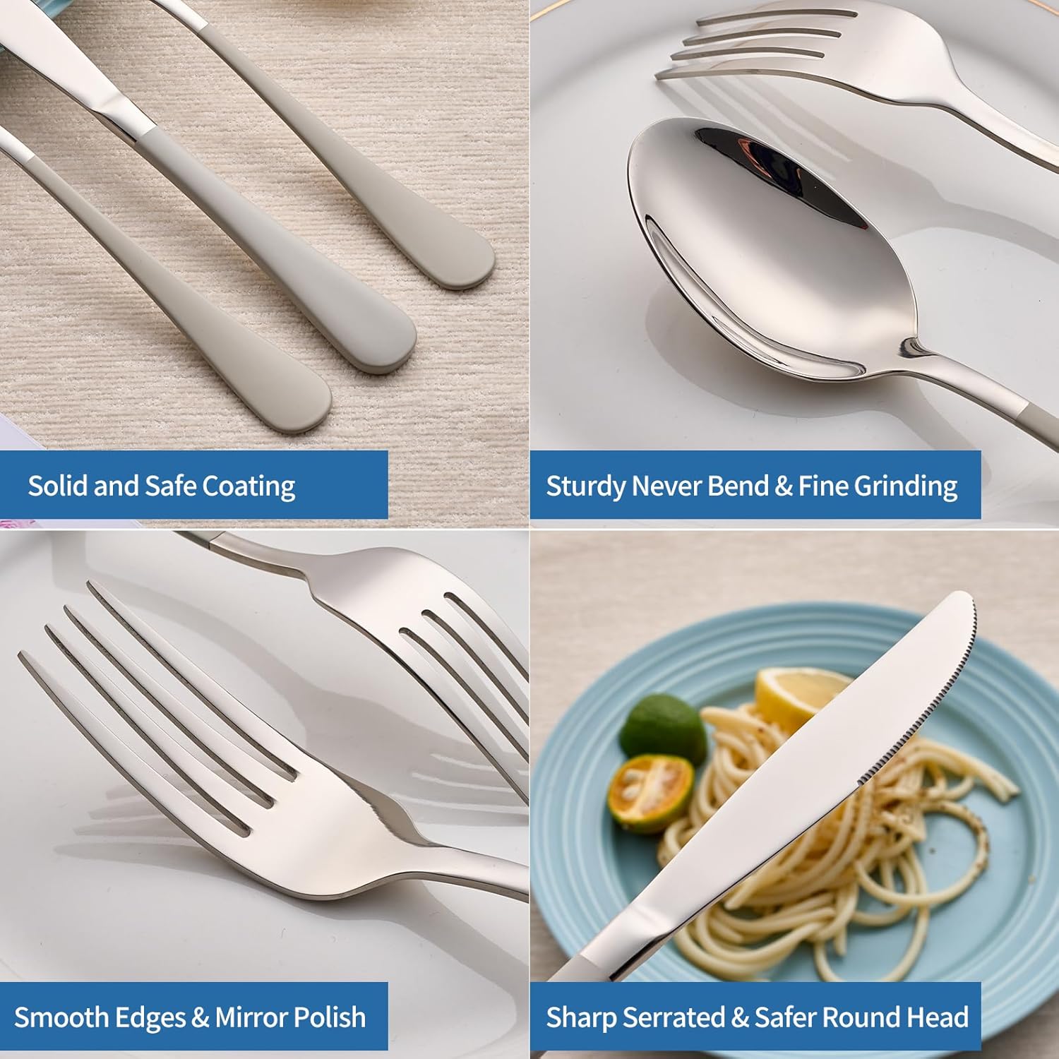 20-Piece Off White Silverware Set, 18/0 Stainless Steel Off White Handle Flatware Set, Service for 4, Modern Cutlery Set Includes Dinner Knives Forks Spoons,Mirror Polished,Dishwasher Safe