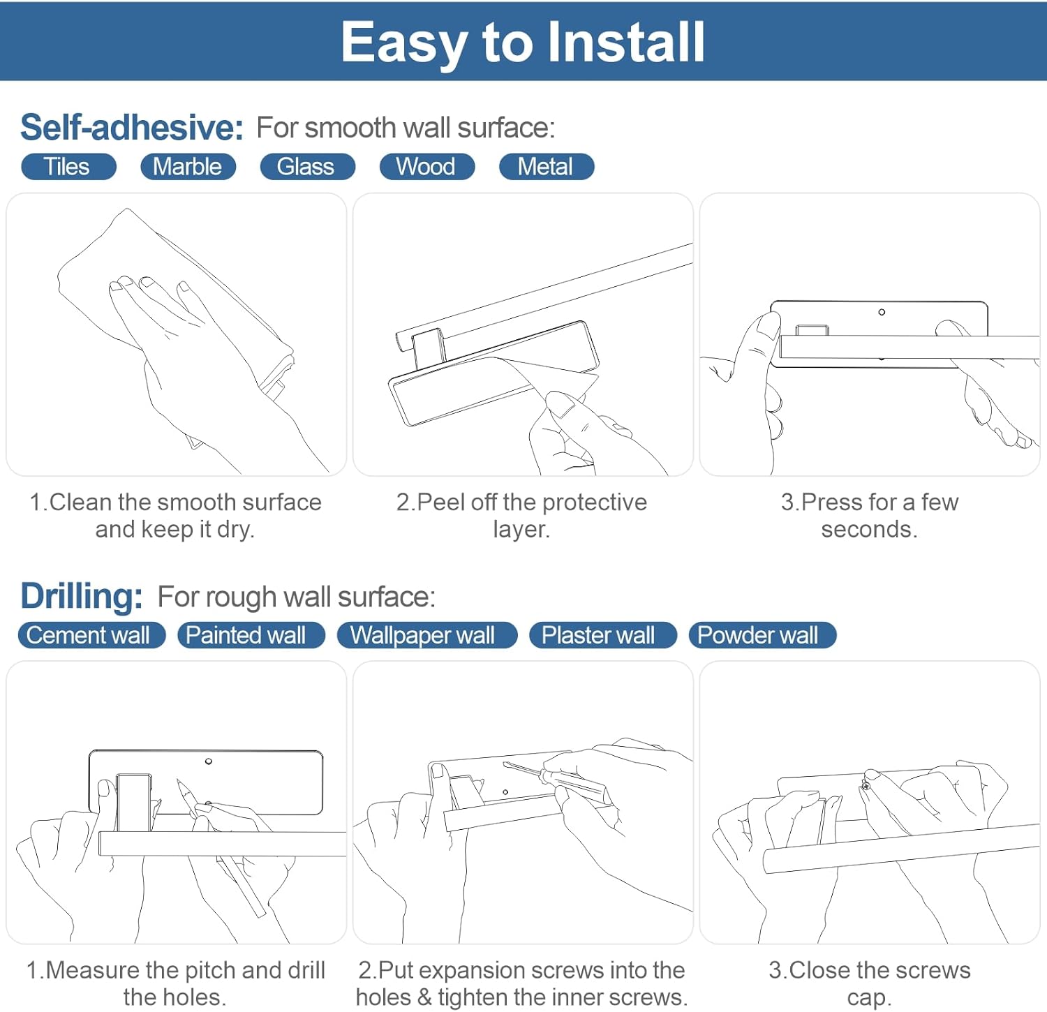 • EASY TO INSTALL: Just press the paper towel holder for few seconds, stick it on the smooth surfaces such as glass, marble, metal, and leave it alone for 24 hours. You can also install it with attached screws