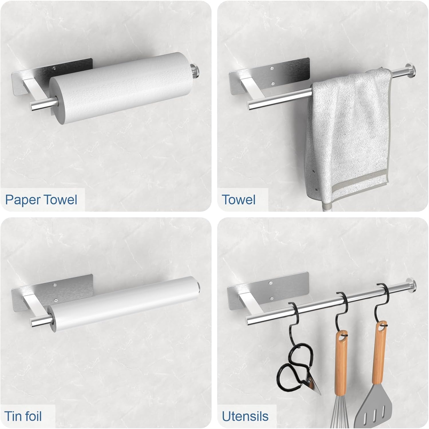 • WIDELY USED: 13 Inch under cabinet paper towel holder can be used to hold towels, paper towel rolls, plastic wrap, tin foil, perfectly match your kitchen, office, bathroom, RV, etc