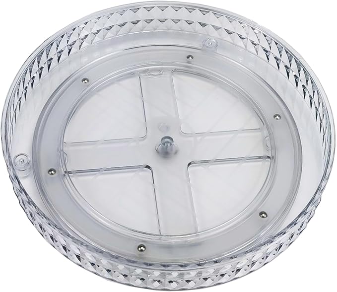 • 【Optimized Design Upgrade】: 1.The double-layer design saves storage space and enhances the daily load-bearing capacity with a sturdy bracket. The space between the two layers can accommodate items up to 7.1 inches. 2.The diamond pattern of the lazy Susan's appearance is simple yet elegant, making it easy to match with our daily home settings. 3.The internal flat placement uses an anti-slip pattern to stabilize our items. 4.The bottom adds anti-slip foot pads to increase the friction on the bottom, making it less likely to shake during rotation.