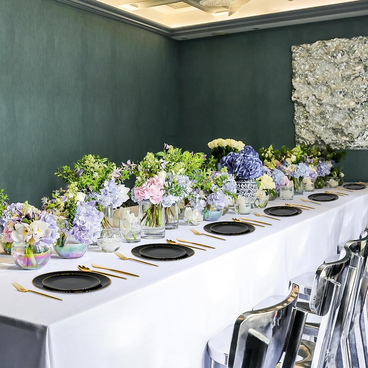 • Versatile Use:These black party plates are simple yet elegant, making them a must-have for your kitchen or party supplies. Perfect for weddings, birthdays, holidays, baby showers, and casual gatherings, they complement any theme or decor. black and gold plates design ensures they blend seamlessly with any table setting, making them a versatile choice for all your entertaining needs.