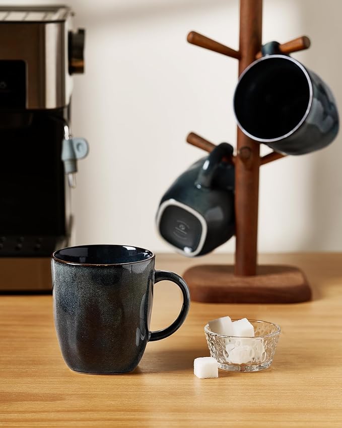famiware Coffee Mugs Set of 6, Ocean Square 13oz Coffee Cup Set with Handle for Cocoa, Milk, Hot Chocolate, Tea, Water, Stoneware Cups for Kitchen, Microwave and Dishwasher Safe, Deep Forest