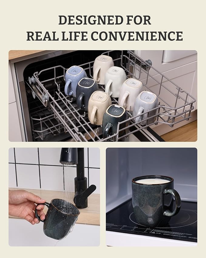 • 【Dishwasher and Microwave Safe】 Famiware Stoneware coffee cups for the kitchen are made of premium stoneware. Each plate and bowl is dishwasher and microwave safe
