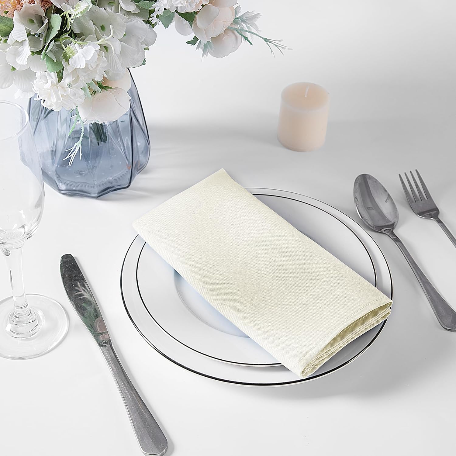 Bailarina Cloth Napkins Set of 40,17x17 inches Dinner Napkins Cloth Washable,Polyester Square Table Cloth Napkin Bulk with Hemmed Edges Ideal for Banquets, Parties and Weddings-Ivory