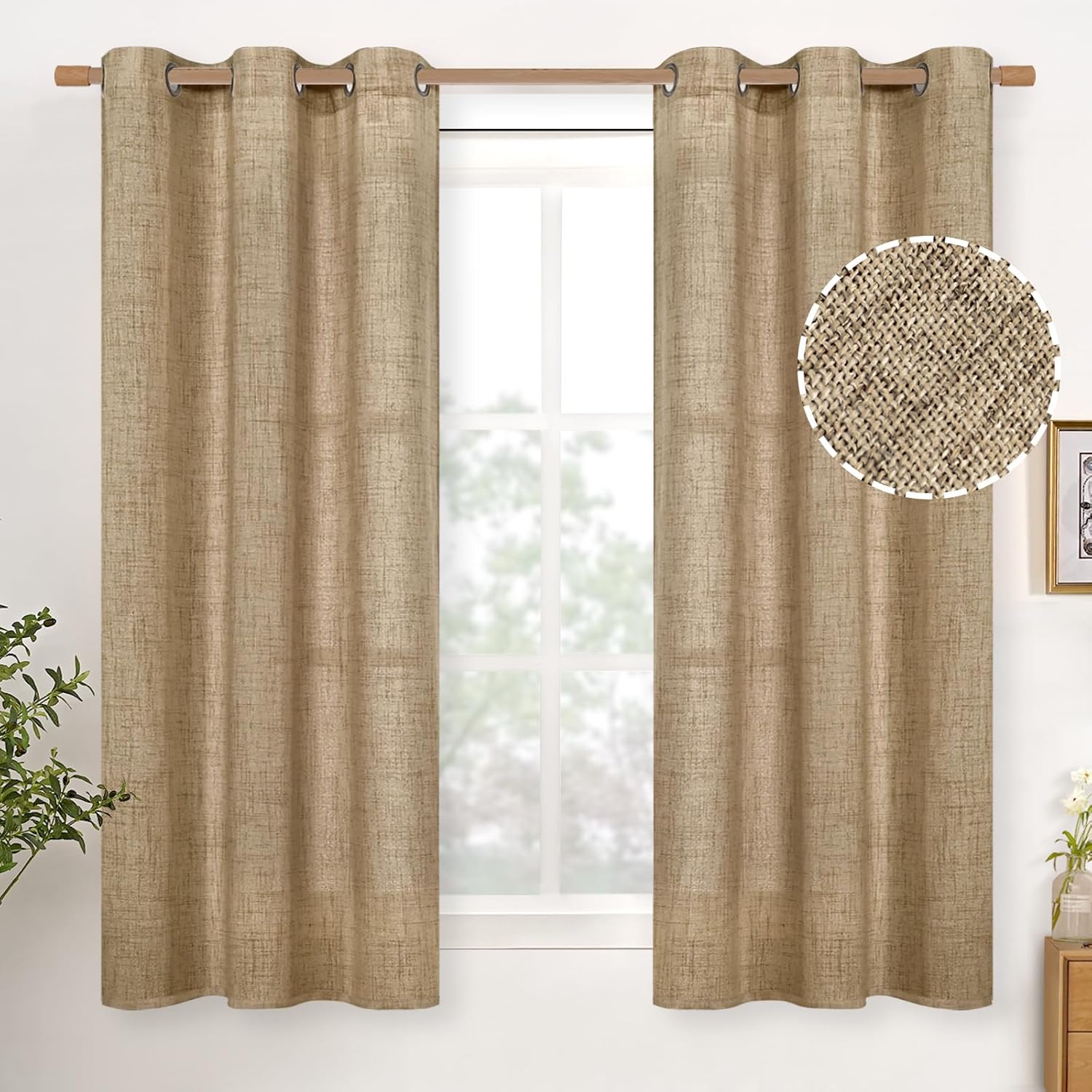 YoungsTex Toffee Linen Curtains 54 Inch Length for Window, Burlap Textured Light Filtering Drapes with Bronze Grommet for Kitchen Bedroom Cafe Decorative Privacy, 2 Panels, 42 X 54 Inch