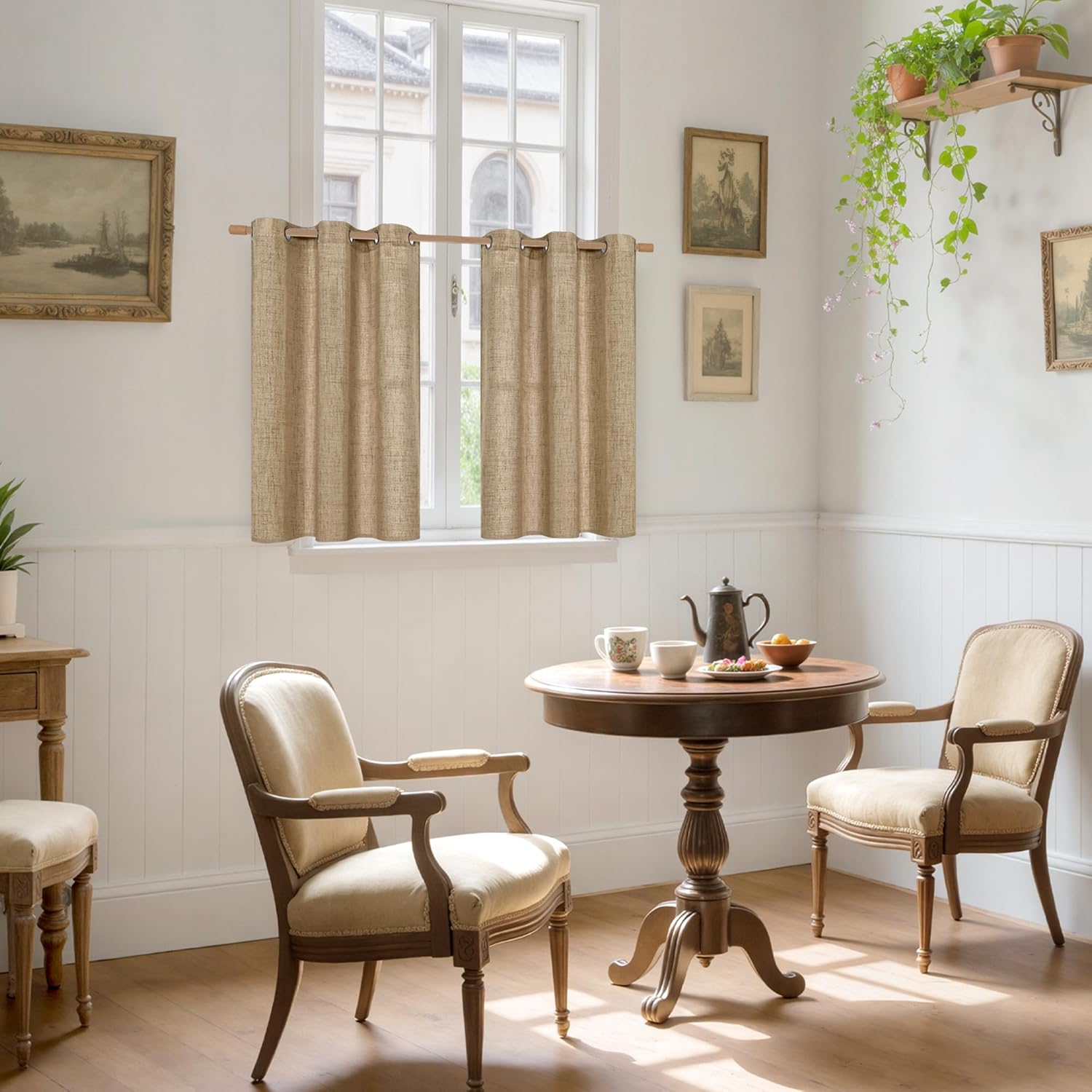 YoungsTex Burlap Linen Curtains 40 Inch Long for Kitchen Cafe Window, Short Semi Sheer Drapes Textured with Bronze Grommet Light Filtering for Bathroom Bedroom, Toffee, 2 Panels, 42 X 40 Inch