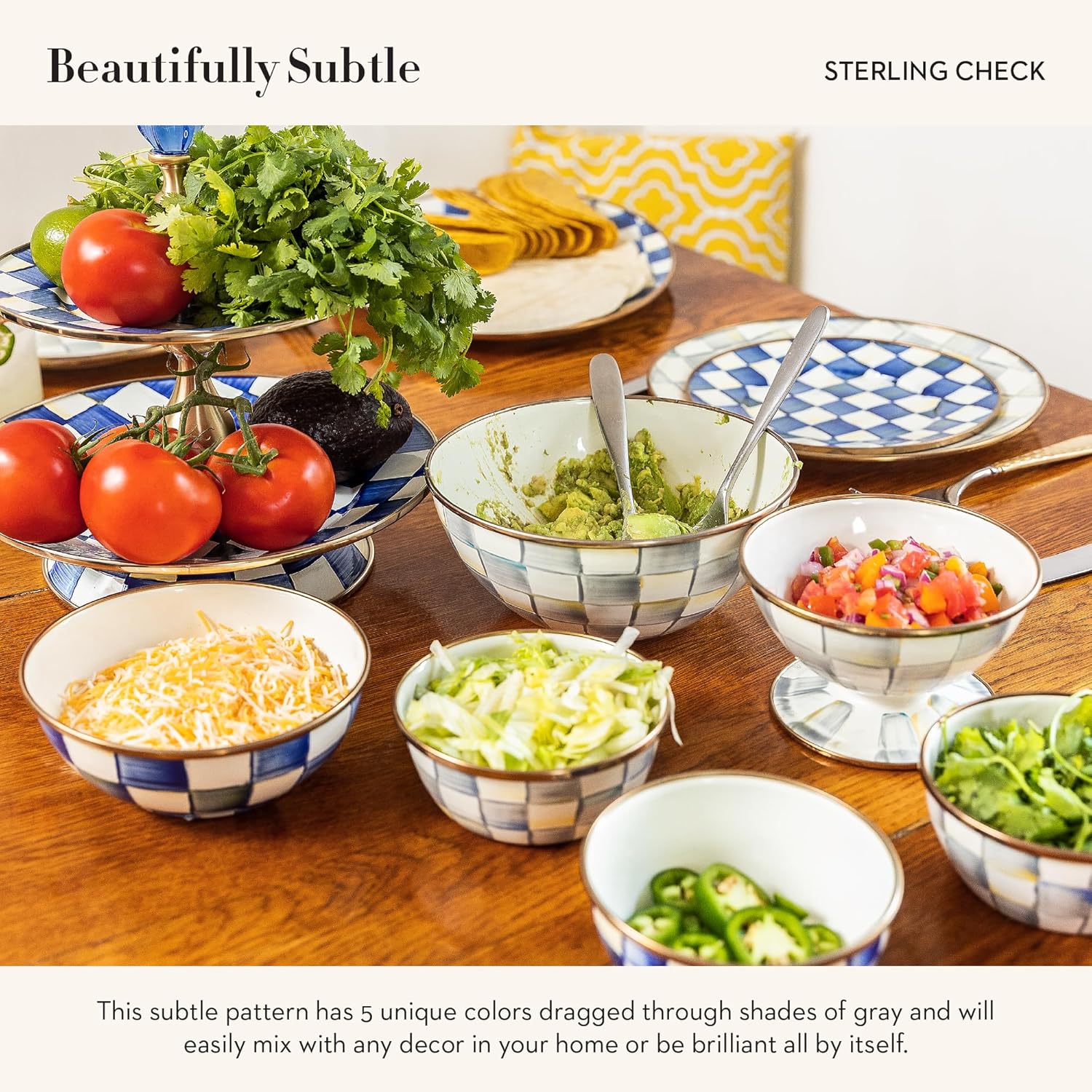 MACKENZIE-CHILDS Enamel Everyday Bowl, Serving Bowl for Entertaining, Extra-Large, Gray-and-White Sterling Check, Set of 1