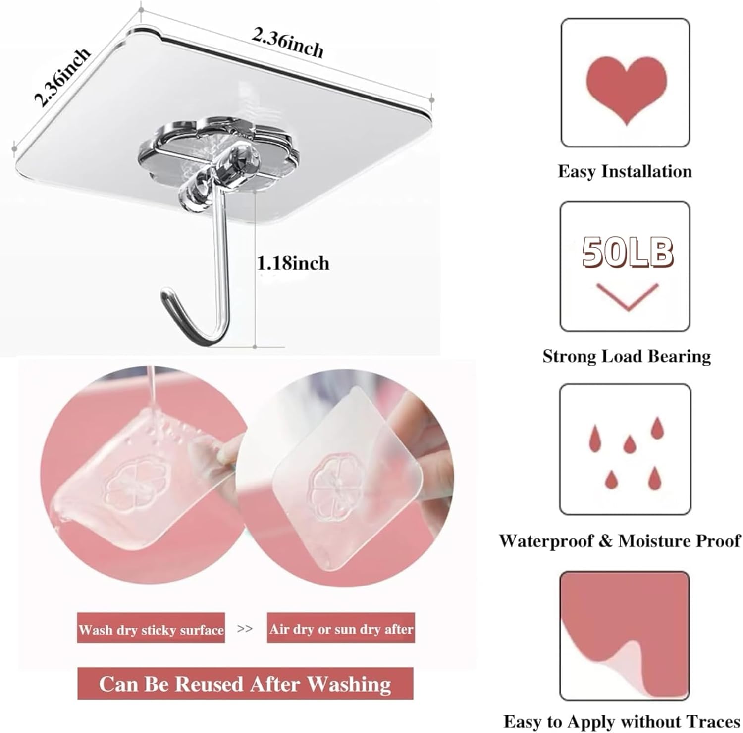 • Perfect Appearance: The adhesive hooks unique transparent design makes it almost undetectable, hooks for hanging heavy duty is perfect for indoor and outdoor decorative applications! Especially suitable for hanging shower or bath accessories in the bathroom or for hanging kitchen utensils and tools on a tiled backsplash