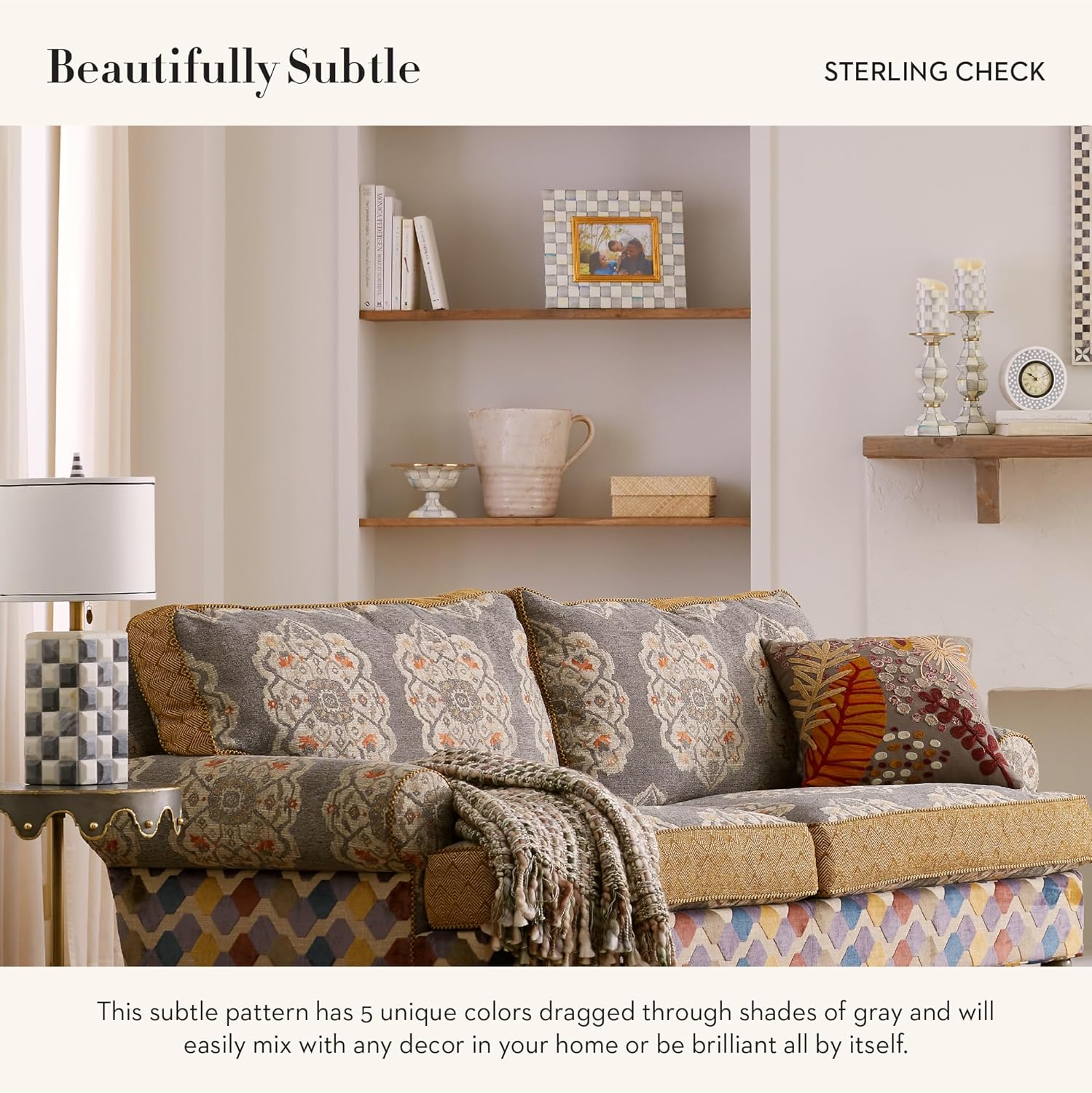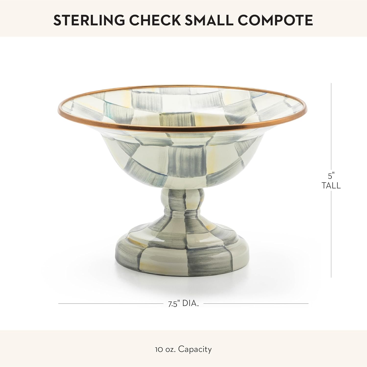 MACKENZIE-CHILDS Enamel Compote, Cute Enamel Pedestal Serving Dish or Decorative Bowl, Small, Gray-and-White Sterling Check