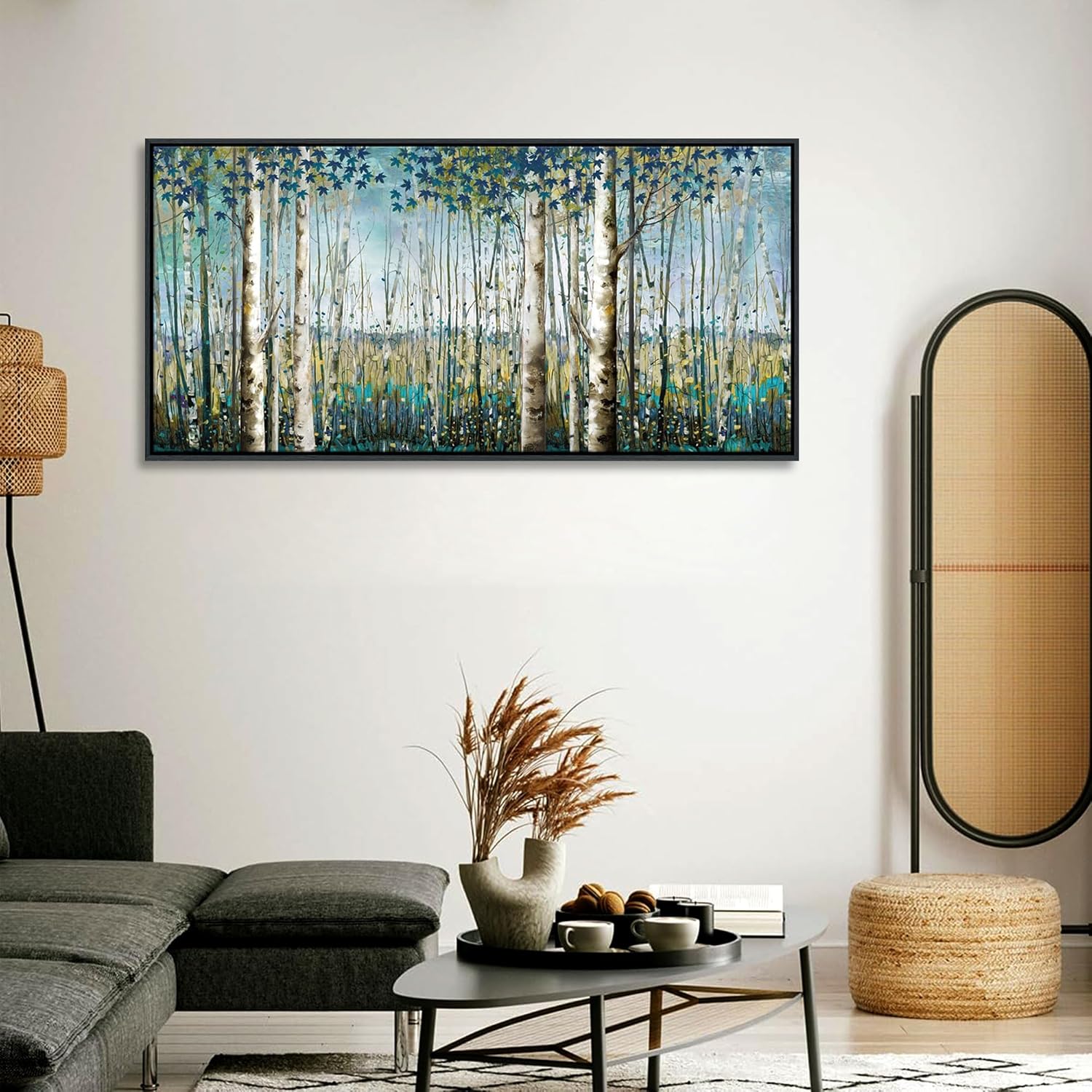 Pogusmavi Tree of Life Wall Art - Large Nature Birch Tree Canvas Painting for Home Decor | Framed Green Artwork for Living Room, Bedroom, and Office | Teal Wall Art Decoration 24x48 Inch