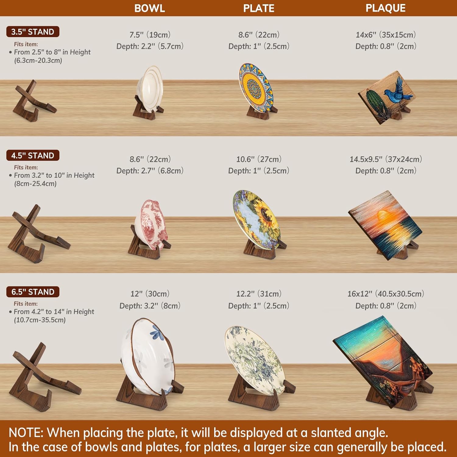 Bowl Stands for Display, 3.5 Inch Plate Holder, Wooden Easel Frame Holder, Display Stand for Large Deep Platters and Dishes, 3.5" H x 4.8" W x 4" D (For Bowls under 2.5" in Depth)
