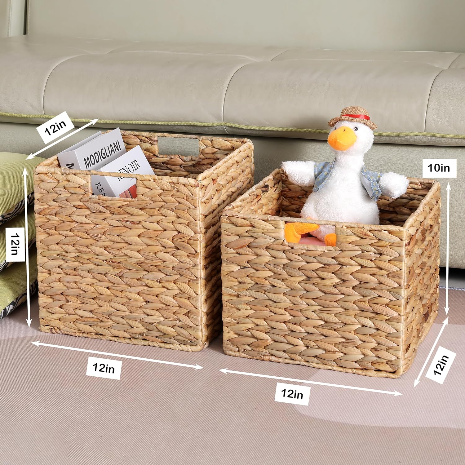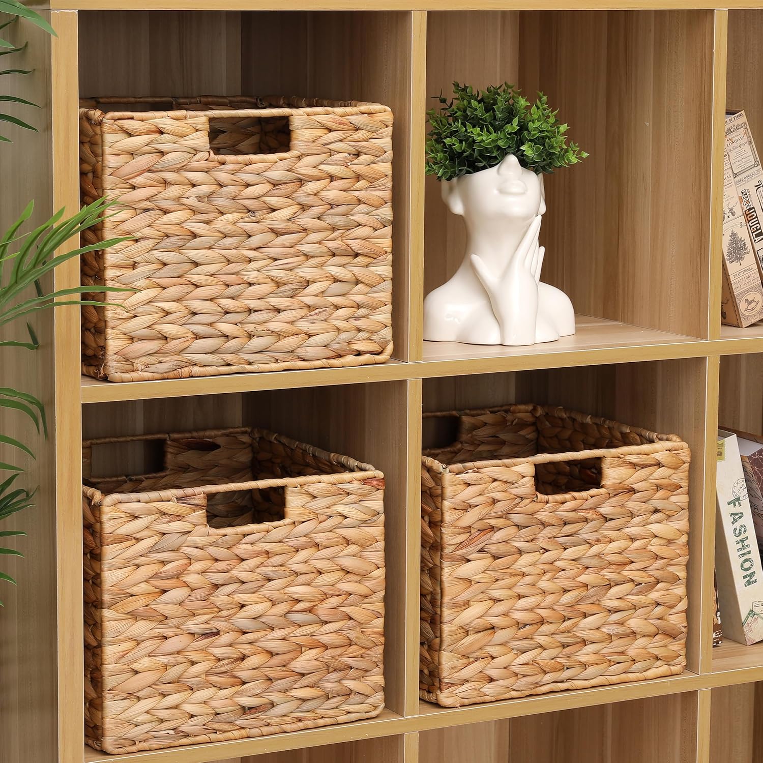 • Foldable Storage Bins:This set of 12x12 wicker baskets features a rustic style, and the water hyacinth construction that adds a natural look to your storage shelving. DINGTAI foldable storage bins are not only used in decoration but practical. Perfect storage solution for any room in the home.