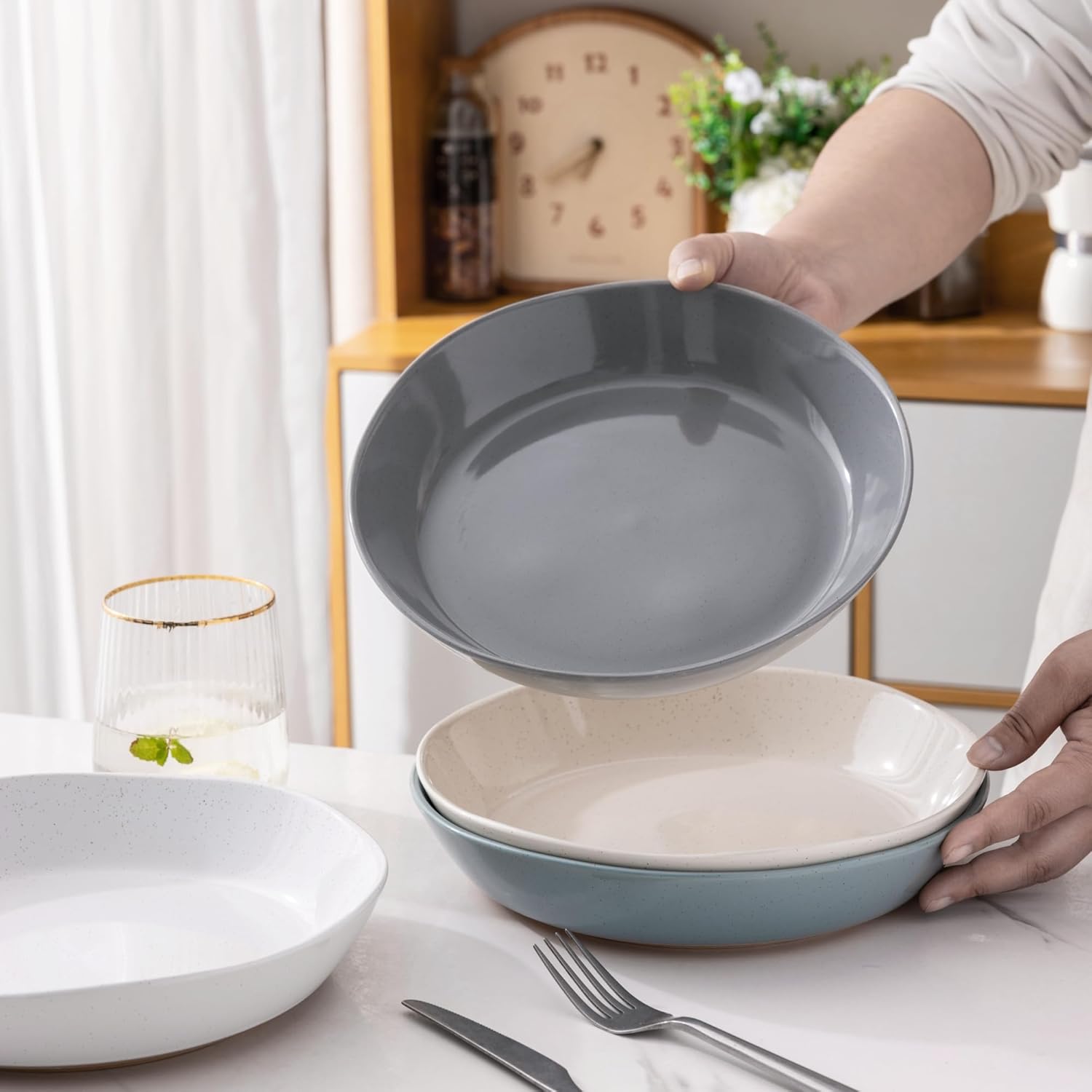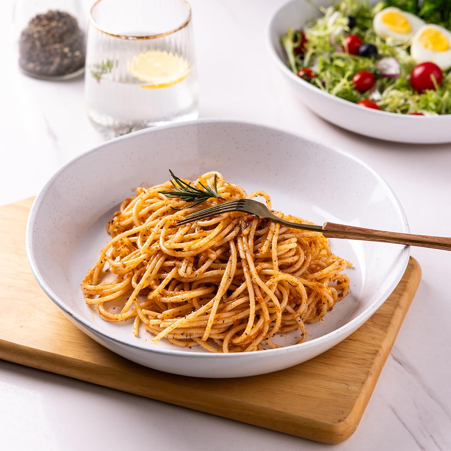 • UNIQUE DESIGN WITH WAVE RIM:These Pasta Bowls are designed by professional artist,The beautiful speckled glaze feels comfortably, It looks fantastic on the table and brightens up your kitchen. It perfect for daily using and special occasion.