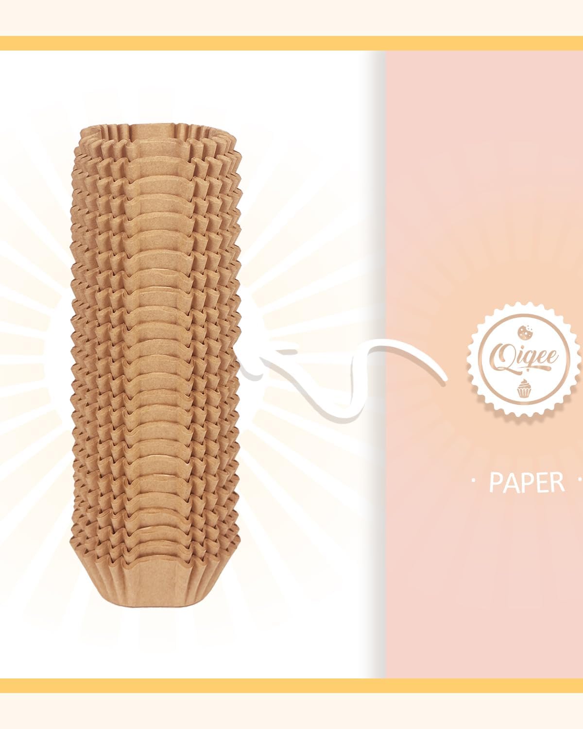 qiqee 500pcs Natural Square Cupcake Liners Muffin Linner No Smell, Food Grade Brown Baking Cups(Standard Size)