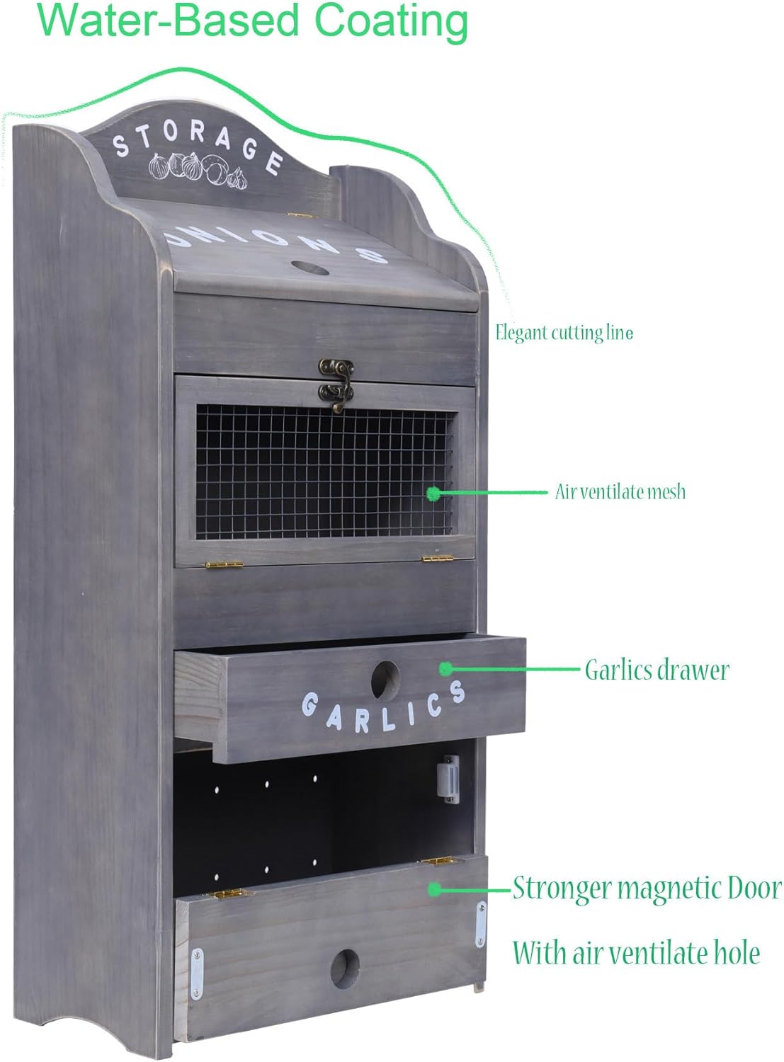 • All-in-One Storage Solution: Combining the convenience of a potato bin, onion box, and garlic keeper, this versatile organizer is the ultimate kitchen companion for any home cook