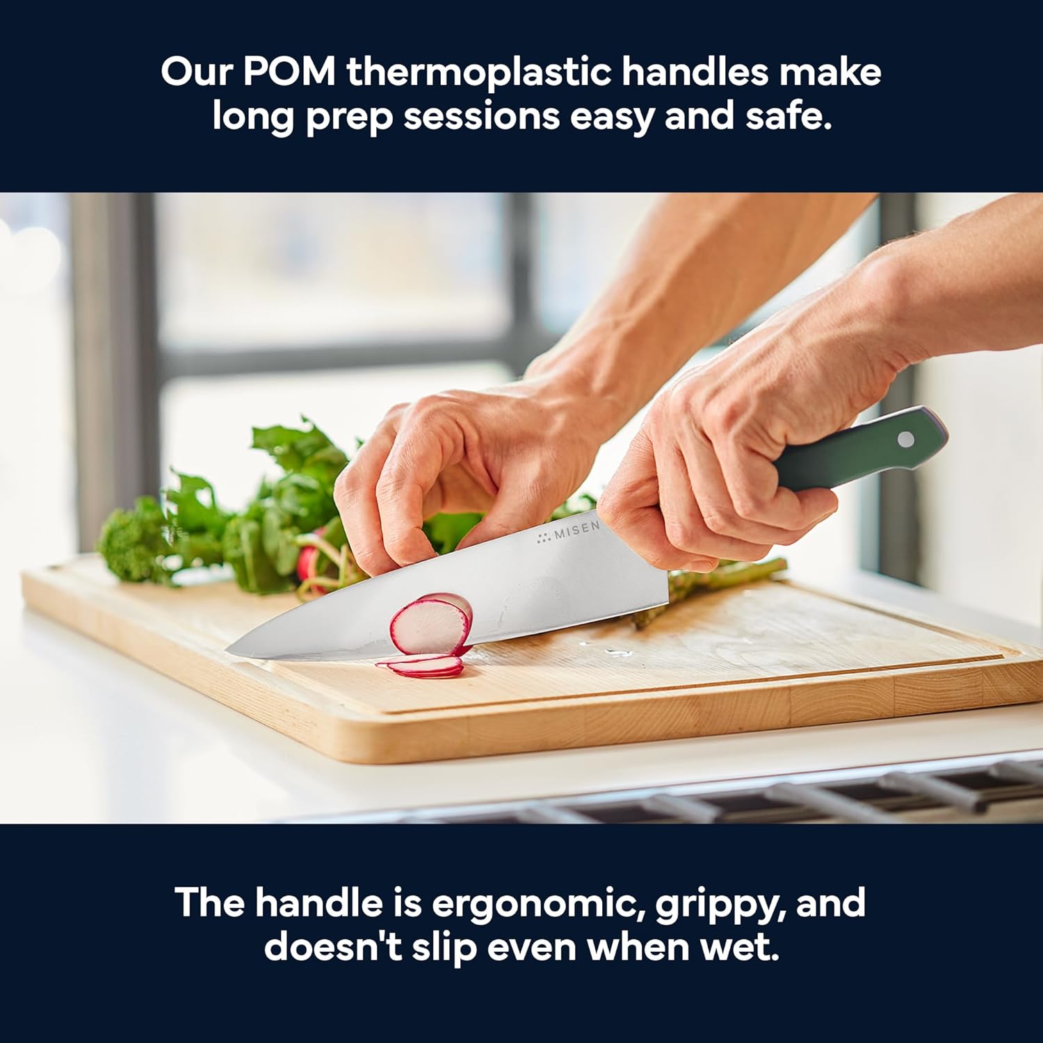 • Ergonomic Sloped Bolster & POM Handle: Thoughtfully contoured for a natural pinch grip, reducing wrist fatigue on long prep days and ensuring a secure hold—even when wet.